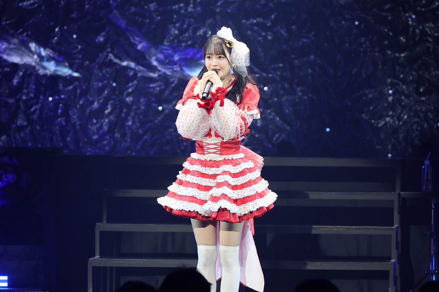まずは無事に卒業記念ソロライブを終えることができてとても嬉しかったです。懐かしい曲をいっぱい散りばめたセットリストだったので、不安要素とかはなく、ただ純粋に自分のSKE48の歴史を辿りながら楽しくライブができて嬉しかったです。やっと終わったというホッとした気持ちもありつつ、終わってしまった寂しさも感じているんですけど、今日のこの景色だったり皆さんからいただいたコールを胸にこれからの人生も歩んでいきたいなと思いました。ありがとうございました。来年からもゼスト所属でソロ活動させていただくことになりました。グループを離れるから変わっちゃったなって思われるのではなく、引き続き応援したくなるような活動ができたらいいなと思いますので、来年からもよろしくお願いします。