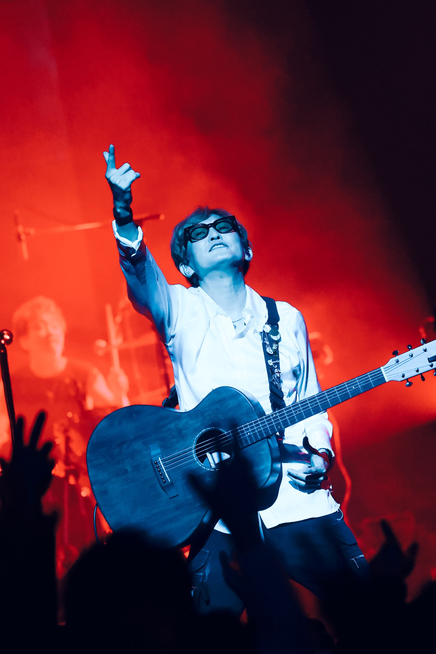 再度のMCでは『イノセント』収録の「バニラ」のMVで共演したSM女王Fanaが出演していたYouTubeコンテンツの話題から「エンタメは共感を得ることも重要だけど、アーティストは自己満足でいい。俺だって自己満足。それがたまたま多くの人に受け入れてもらえただけ」「(デビュー)26年、あっという間。いまさら方向転換なんてできない。これからも自己満足で行くぞ!」と宣言。客席が大きな歓声と拍手で答えると、「獣ノニオイ」「覚 醒」「ハチミツ」と、まさに誰にも似ていない独創的なナンバーを連発。観客を照らすひとすじの光のような「国道4号線」を歌い終えると、客席からは波立つような拍手が沸き上がった。