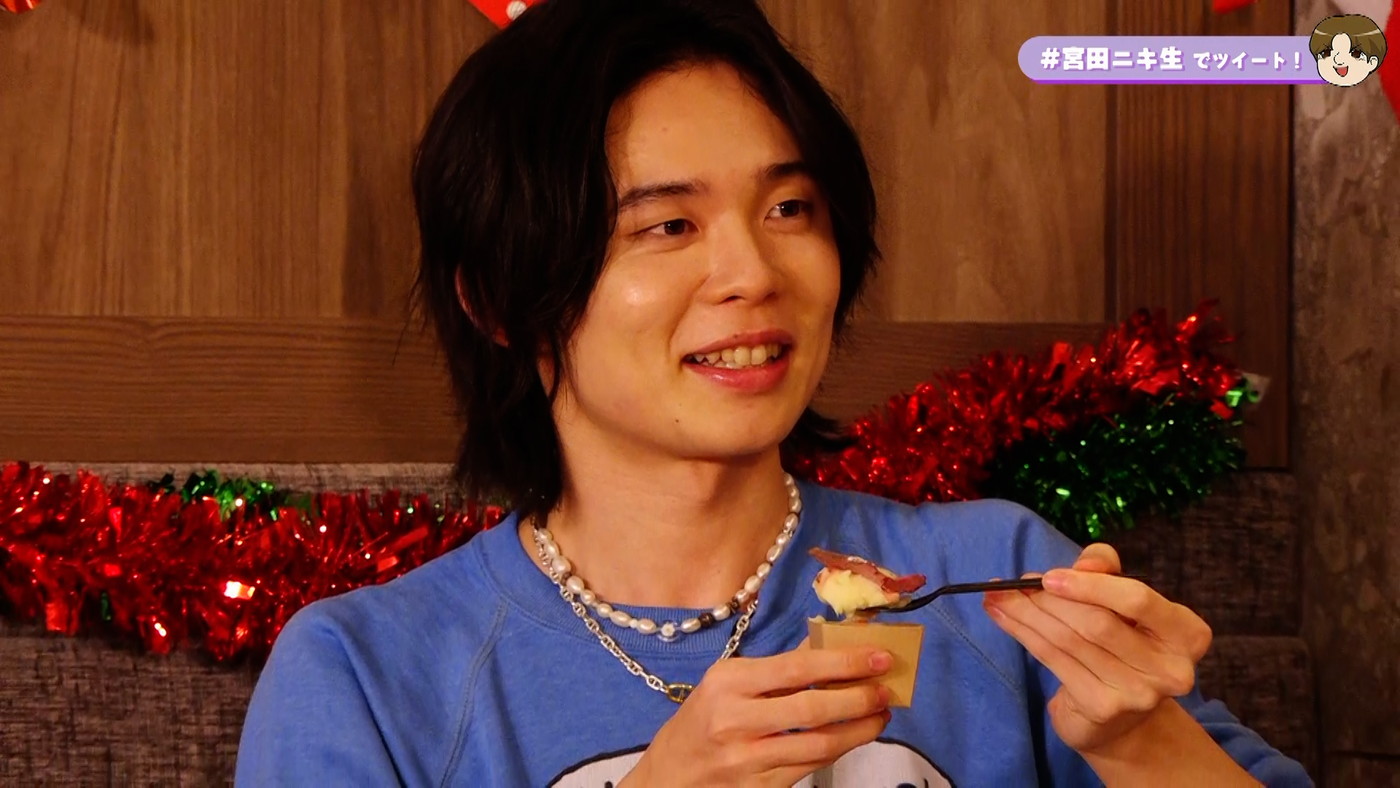 「姫(視聴者)と一緒にお酒を飲みながらゆっくり話そう」という恒例の企画では、クリスマスイブということもあり、宮田はシャンパンで乾杯。視聴者たちへのクリスマスプレゼントとして、アニメ『BanG Dream! It’s MyGO!!!!!』の楽曲「迷星叫」の歌ってみた動画を披露した。