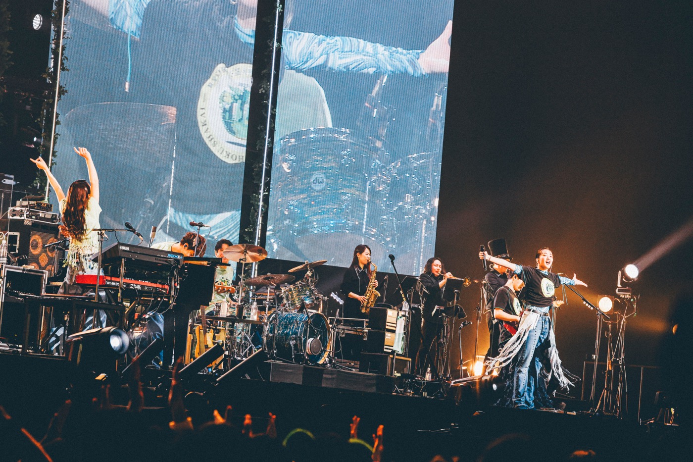 「6万人の景色も最高なんだけど、もっとたくさんの人を巻き込んで、たくさんの人を好きにさせて、まだまだ『リョクシャ化』していけたらいいなって思います」と長屋がさらなる決意を告げたところで、ライブは「サマータイムシンデレラ」からいよいよ終盤へ。1万人とクラップのコール&レスポンスを繰り広げた「Landscape」、バンドのマスコットキャラクター=ブロッコリーが舞台に登場した「Don!!」に続き、ストリングス/ブラスも登場した12名フルラインナップでの「sabotage」「Mela!」で、本編は圧巻のフィナーレを迎えた。