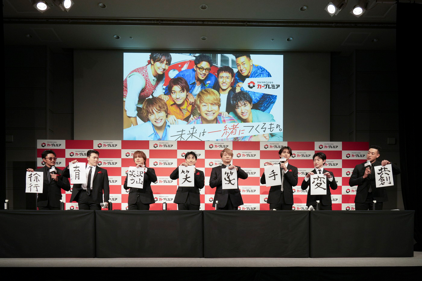 発表会では、新CM「未来は一緒につくるもの」篇が披露された他、初めてカープレミアのイメージキャラクターに就任した香取慎吾と、2年目を迎えたGENERATIONSのメンバー7名による書初めが行われ、新年の抱負を発表した。