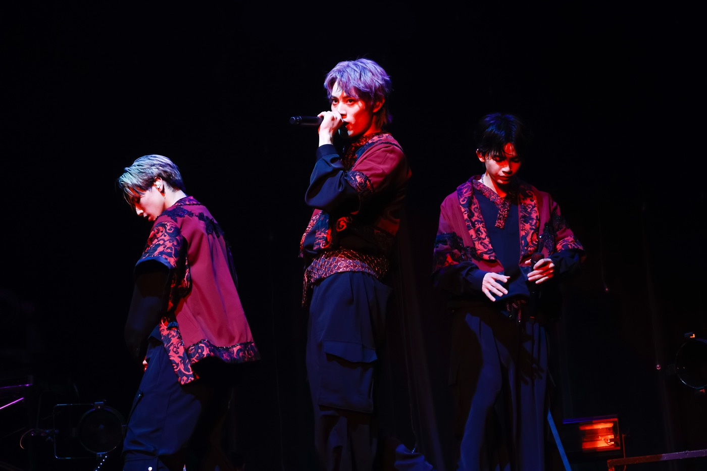 数多のペンライトが激しく揺れる激熱ロック「OPEN」、HAYATOの“強気になってんじゃねえよ”の曲中台詞に悲鳴が起こり、大きく体を反らす遠吠えダンスがエモーショナルな「Shut Up! BREAKER」、一列になって客席へと迫り来る振りに胸沸き立つ「Dark Knight」と、休みなく畳みかけられるアッパーチューンは見ごたえ抜群。メリハリ豊かでシンクロ率の高いダンスに挑発的なラップ、鬼気迫りながらも伸びやかなボーカルが絡み合って、SWAGたちの身も心も大きく揺さぶっていく。
