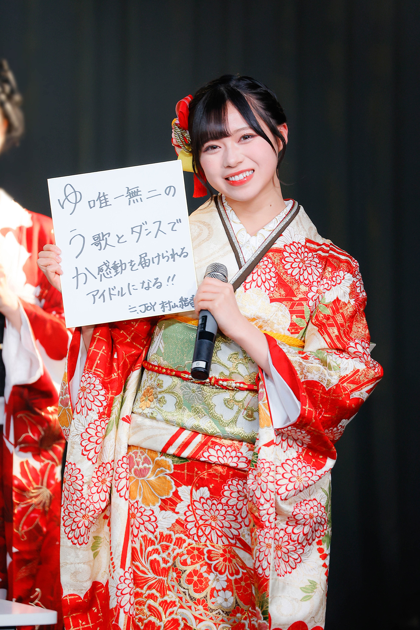 「成人メンバー色紙プレゼント!お楽しみ抽選会!」では、先程披露した「あいうえお作文」が書かれた色紙の抽選会も実施。メンバーにとっても来場者にとっても一生に一度の忘れられない成人式イベントとなった。