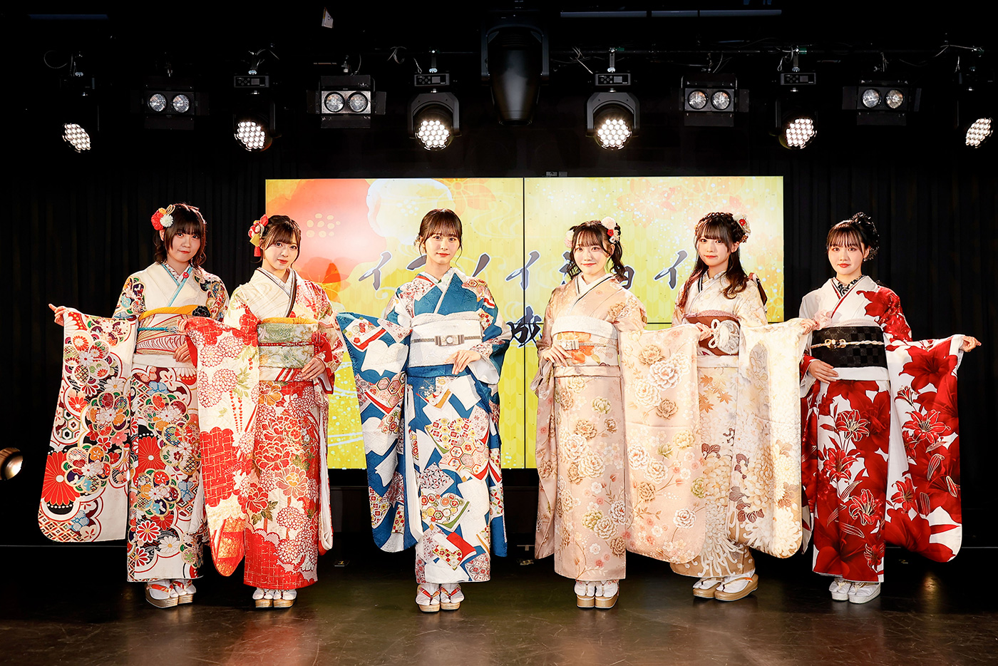 1月19日、東京・代アニLIVEステーションにて『=LOVE / ≠ME / ≒JOY合同成人式2024』が開催され、今年、新成人を迎えた尾木波菜、本田珠由記(≠ME)、市原愛弓、小澤愛実、藤沢莉子、村山結香(≒JOY)の6名が振袖姿でイベントに登壇した。