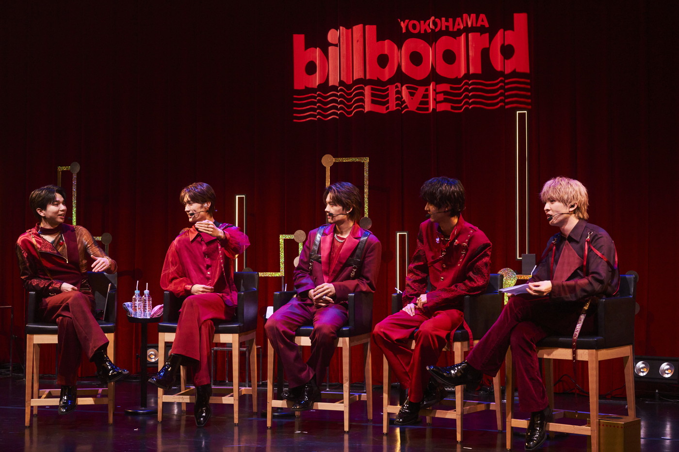 画面の前で待機していたファンの目に最初に飛び込んできたのは、椅子に座ったまま微動だにしないM!LKの姿。やがて、リーダーの吉田仁人から「始まってるよ」と声をかけられた佐野勇斗にカメラが寄っていき、シリアスな表情を一気に崩してコミカルに挨拶すると、事前にアナウンスされていた“「Kiss Plan」の世界観を表現したとあるスペシャルな場所”の全貌が明らかとなり、ビルボードライブ横浜からの生中継であることが明かされた。