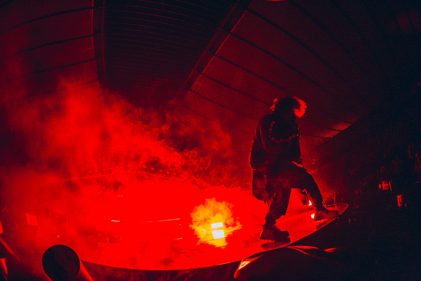 ライブはアルバムどおり、SE の「Audio 007」から「ZERO」へという流れで始まった。重低音が鳴り響き、ステージ下からせり上がってきたVaundyがいよいよオーディエンスの前に登場すると、会場中から大きな歓声が巻き起こった。巨大なステージの中央からはアリーナの真ん中に向かって花道がまっすぐ伸びていて、Vaundyはそこを威風堂々と歩きながら声を響かせる。