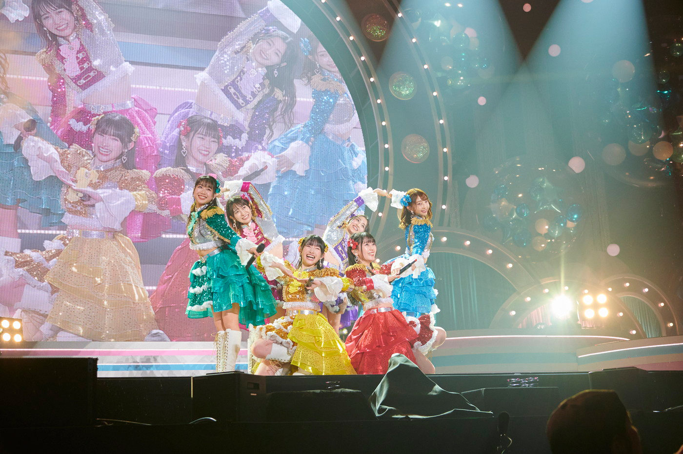 メンバー6人は「恋」「青春」それぞれをイメージしたピンクとブルーの衣装、最新アルバム『ときめく恋と青春』に合わせて制作されたメンバーカラー衣装、このライブでお披露目となったきらびやかな新衣装に着替えつつ、勢いに満ちたパフォーマンスを展開。