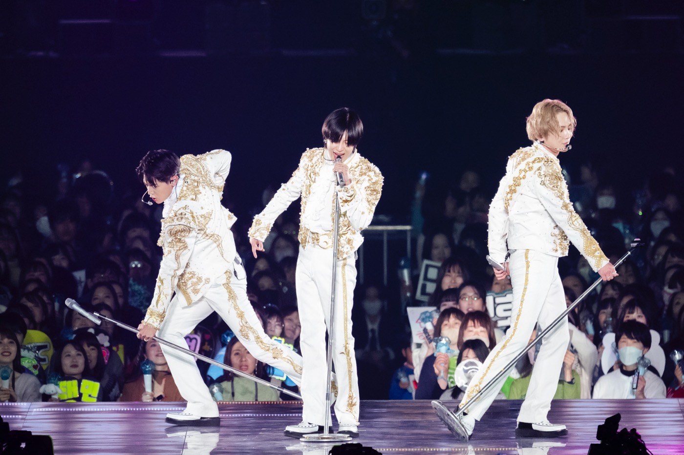 「SHINeeにとって特別な意味のある曲」。そうKEYが紹介すると「Colors Of The Season」へ。前回のドーム公演の際には1曲目に歌われていて、彼らにとって「特別」という意味を反芻しながら、今、目の前で力強く歌を紡ぐ3人の姿に心が動かされる。そして、そんな彼らがこの日の最後に届けたのは「1000年、ずっとそばにいて…」。愛を伝えることに“もしも千年掛かったとして ずっと僕のそばにいて”というメッセージを、観客もしっかりと受け止め、プラカードを使ったサプライズでお返しする。客席に「SHAWOL(ハート)SHINee」の文字が浮かび上がり、それを見たMINHOは顔を手で覆って涙を流し、KEYも泣き笑いの表情を、TAEMINも必死に涙を堪えていた。