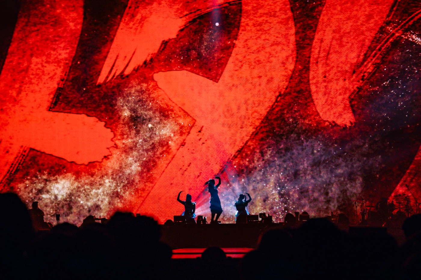 久しぶりに3rdアルバム『METAL GALAXY』から3曲立て続けに披露され、BABYMETALのバラエティに富んだ音楽性を凄まじい展開の早さで表現していく。神バンドの演奏が鳴り響いた後は、再びメインステージに戻り巨大LEDと照明の演出が映える「MAYA」と「BxMxC」が披露された。