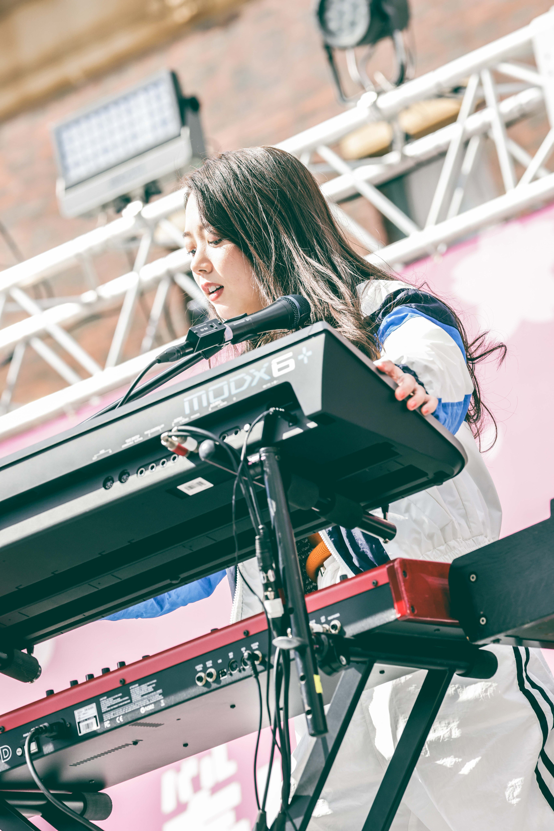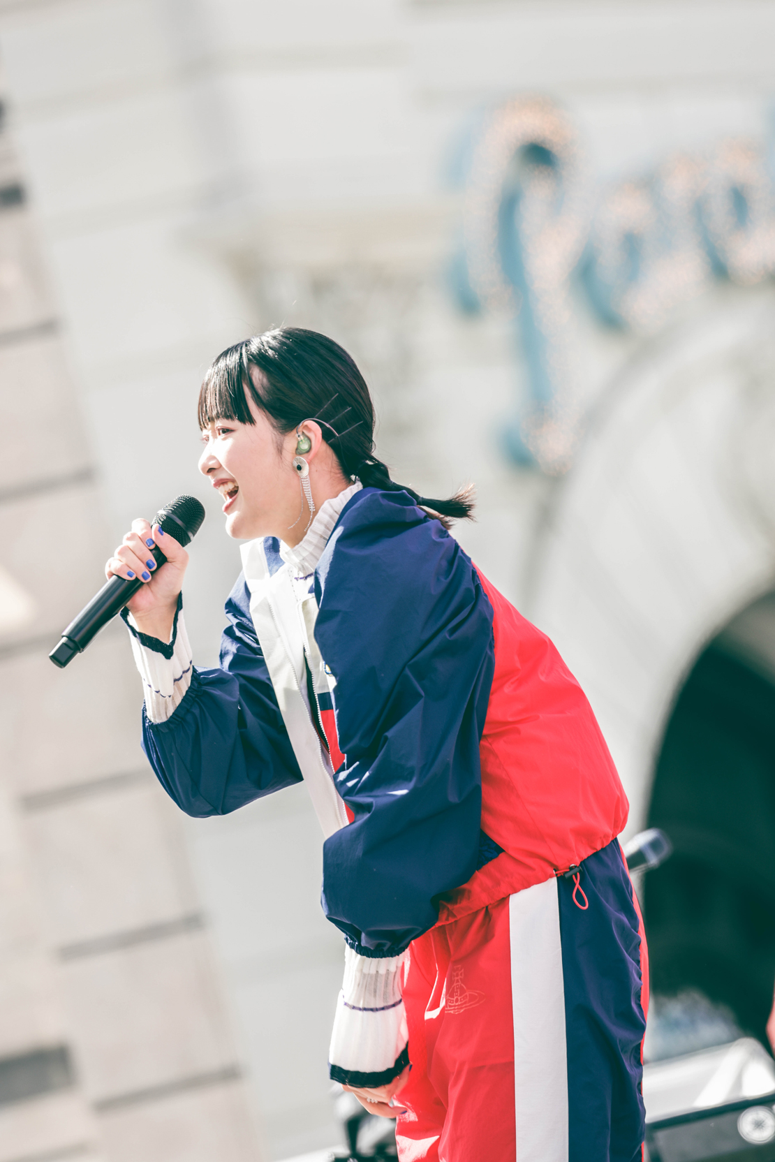 SEを背にスポーティーでカラフルな衣装に身をまとったメンバーが現れ、「『ユニ春』、楽しんでいこうね~!」と長屋晴子(Vo、Gu)が開口一番、躍動感のあるビートとともに突入した「始まりの歌」から、『ユニ春』とベストマッチな瑞々しいポップソングで、あっという間に見る者を魅了! 「Don!!」では、リズミカルな曲調に合わせて手が上がるハッピーな光景を創出し、伸びやかに歌い上げステージを横断する長屋のパフォーマンスも華やか極まりない。
