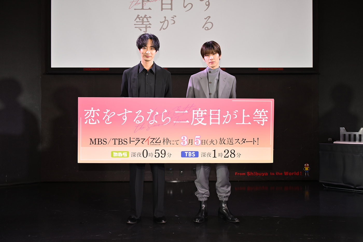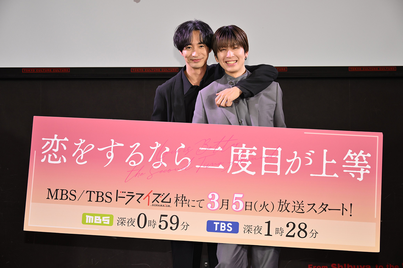 出版社編集者×クセモノ大学准教授の“再会”ラブストーリー『恋をするなら二度目が上等』が、MBS/TBSドラマイズム枠にて3月5から放送スタート。その第1話の先行試写&完成披露トークイベントが3月5日、東京カルチャーカルチャーで実施され、W主演の長谷川慎(THE RAMPAGE)と古屋呂敏が参加した。
