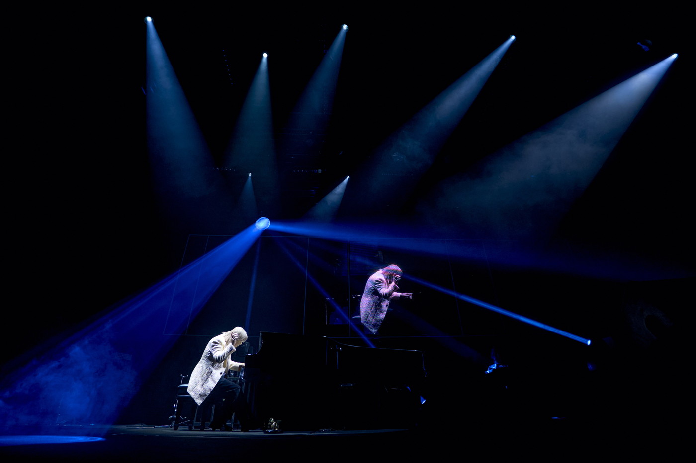 ピアノによるTK-soloパートは、会場それぞれ小室によるインスピレーションによって演奏曲は入れ替わっていく。この日は、反戦歌をイメージした「All-Right All-Night(No Tears No Blood)」を、絶妙なピアノ構成によるアレンジでプレイ。さらに映画『ぼくらの七日間戦争』のサントラ『SEVEN DAYS WAR』から「WINNERS」の一節をつま弾き、記憶の扉を開けていく。木根曲の「GIRL FRIEND」へとシナプスを紡ぎ、ヒット曲「SEVEN DAYS WAR」を奏でながら小室は一拍間を置き、0.5秒ぐらいの瞬間にオーディエンスへコーラスを促した。まるでニュータイプのように意思は通じ合い、一気に歌声が轟く会場。鳥肌もののモーメントだ。感動はまだ止まらない。『劇場版シティーハンター 天使の涙(エンジェルダスト)』のハイライトシーンで流れた挿入歌「Angie」を、即興アレンジを交えながらピアノメドレーのシメとしてしっとりと響かせてくれた。まるで数百年前からこの世に存在していたかのような魔法めいたメロディの力。音楽家とは数秘を操る科学者であり魔術師だ。心がほろほろと溶けていく瞬間だった。
