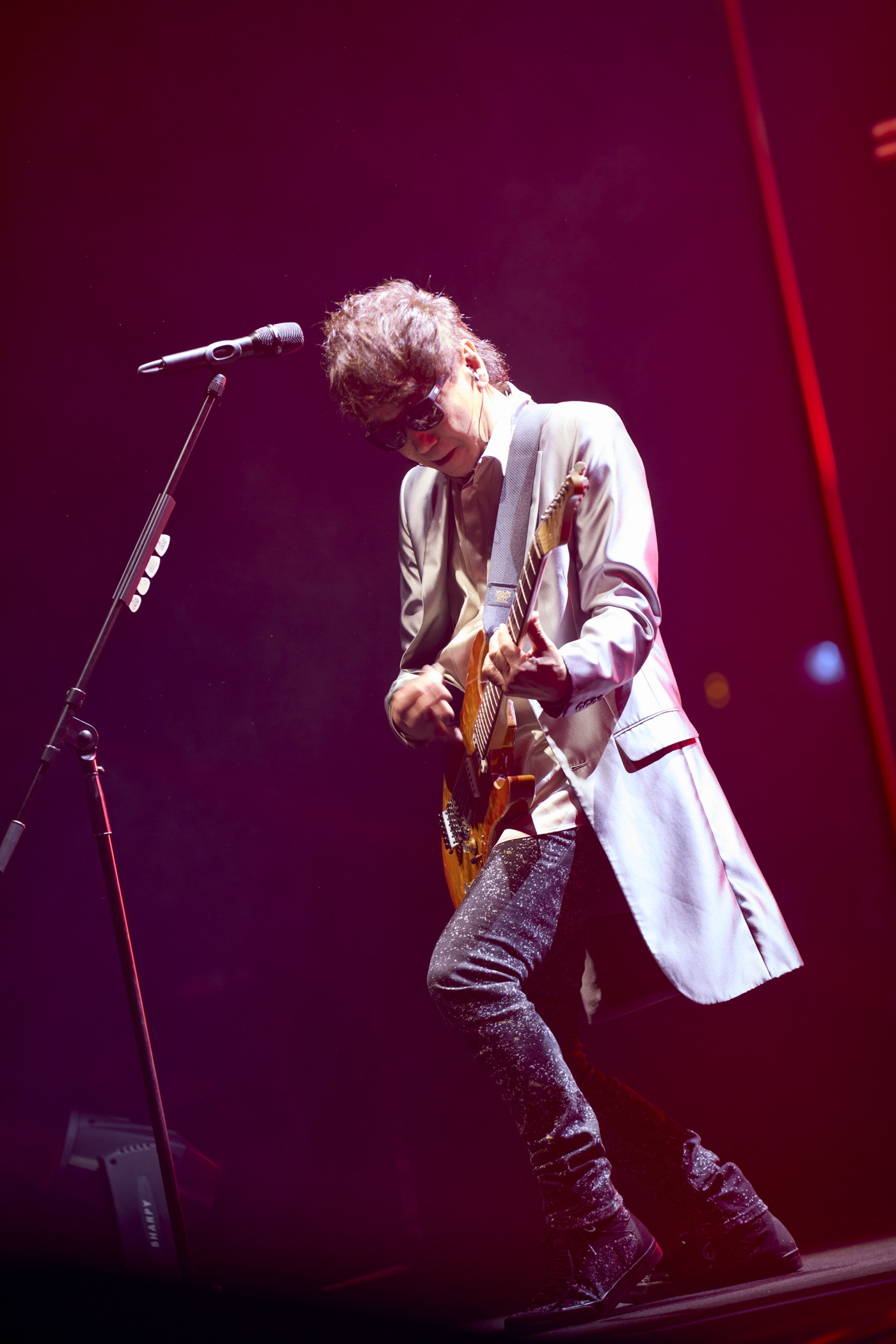 宇都宮は、登場シーンから式典のごとく紳士的な挨拶を交わした。本公演へ向けた気持ちの入り方が表れていたのかもしれない。ギタリストの木根が、グランドピアノを弾いている姿も新鮮だ。1曲目は、意外にもTMN期ラストシングル「Nights of The Knife」から始まった。1994年、突然のTMN終了には膝から崩れ落ちるほどの悲しみを誘った本曲も、今なら40周年のドアを開ける始まりを告げる曲として受け止められる。ギターサウンドを、小室がシンセサイザーで表現していたことも聴き逃せない。この選曲は、本ツアーが1994年終了時を分岐点とする、あらたなパラレルワールド説も予感させた。