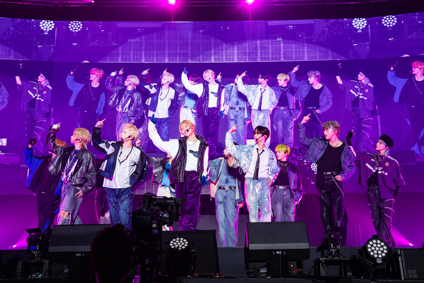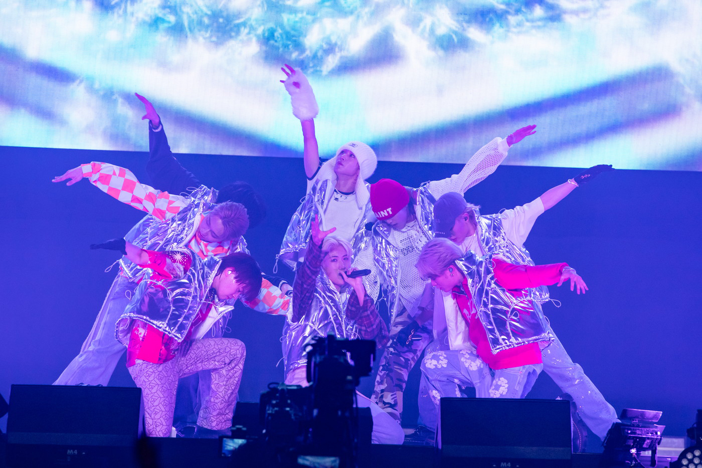 ポップな「Unlimit」のイントロから登場したのは、爽やかなDXTEEN。ハッピーな空気感に包まれながら「Brand New Day」を披露。ただキュートなだけではなく、実力を感じるパフォーマンスで圧倒すると、メンバーたちがわちゃっと遊んでいるような「Stars」で会場を沸かせ、会場を笑顔にして行く。