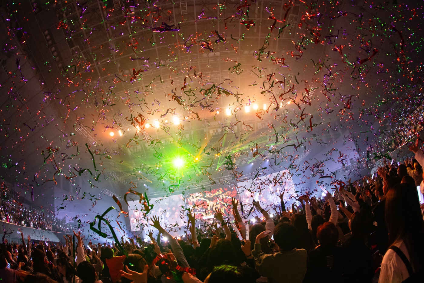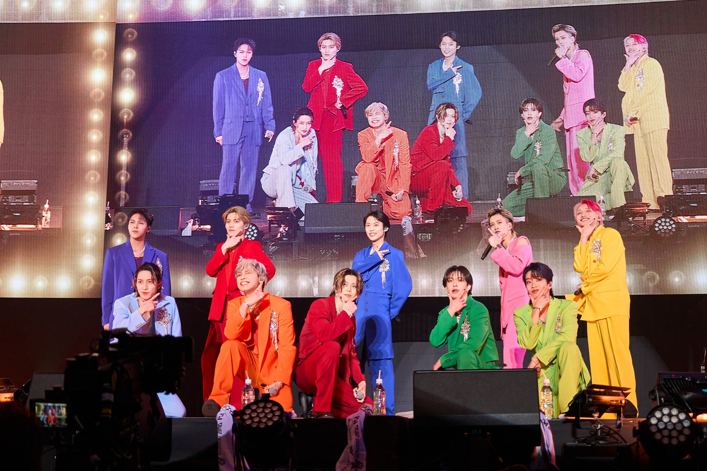 この日のトリは、INI。彼らが登場すると楽曲が聴こえなくなるほどの歓声で包まれ、その勢いを感じることができる。鬼気迫るパフォーマンスで「LEGIT」「DROP」とたたみかけるも、MCではメンバーがそれぞれ髪色を変えた報告をするなどほっこり。