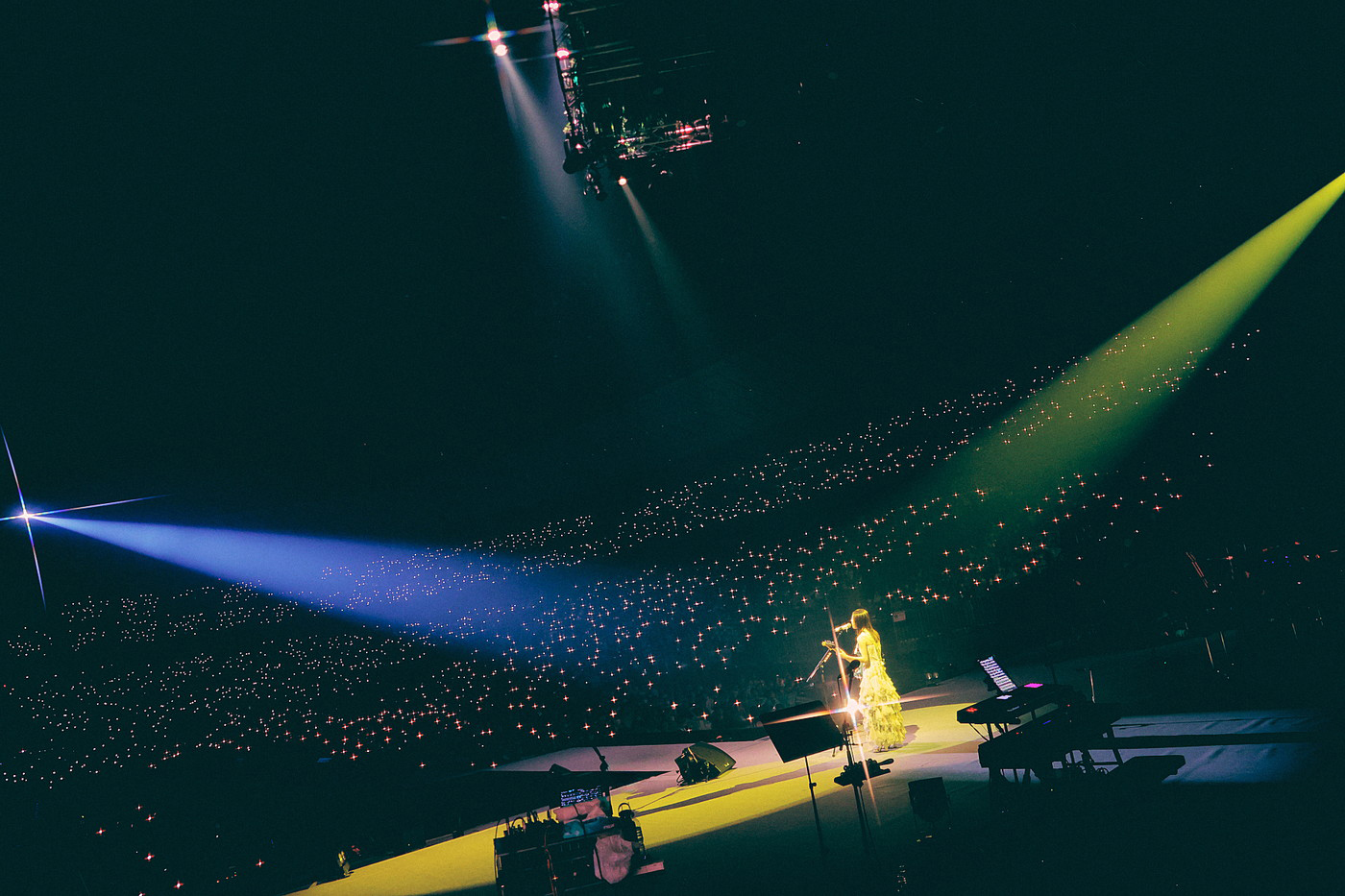 立て続けに披露されたのは同アニメエンディングテーマ「Anytime Anywhere」。センターステージからリフトアップし2階席付近の目線まで昇り披露された姿に、会場は息を飲み見惚れ聞き惚れていた。