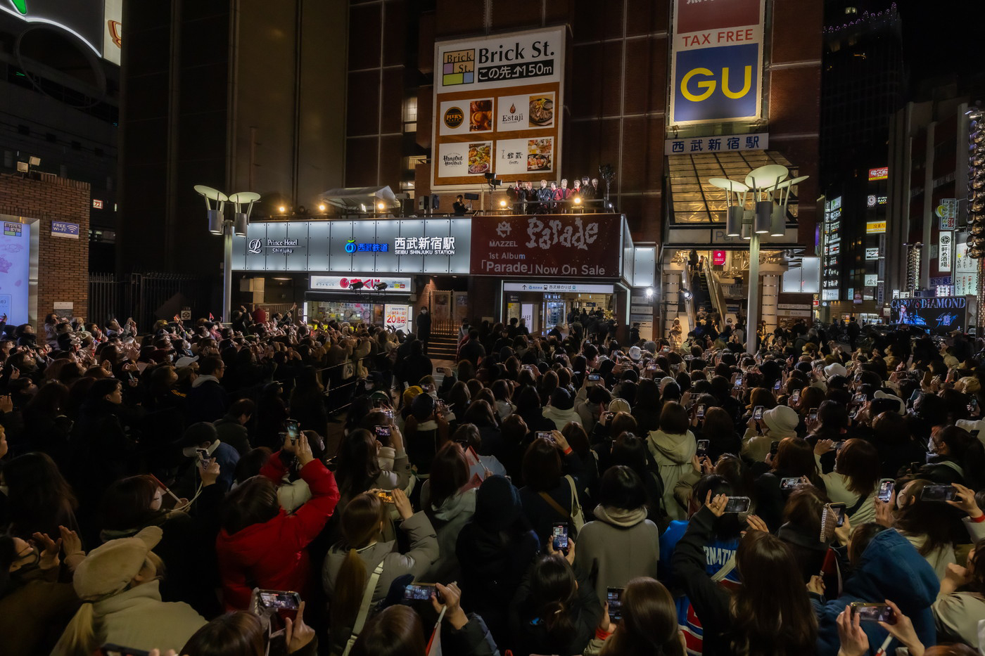 3月20日に1stアルバム『Parade』をリリースしたBMSG所属の8人組ダンス&ボーカルグループMAZZELが3月21日、西武新宿PePe広場前で発売記念イベントを開催。