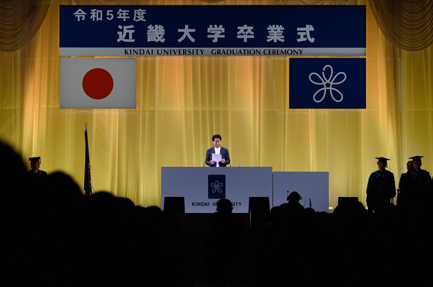 近畿大学では、コロナ禍に突入して以来、卒業式などの式典をオンライン生配信や参加者を卒業生のみに限定した形で執り行ってきたが、2024年は5年ぶりに卒業生と保護者が同じ会場で参加する、本来の形が実現した。