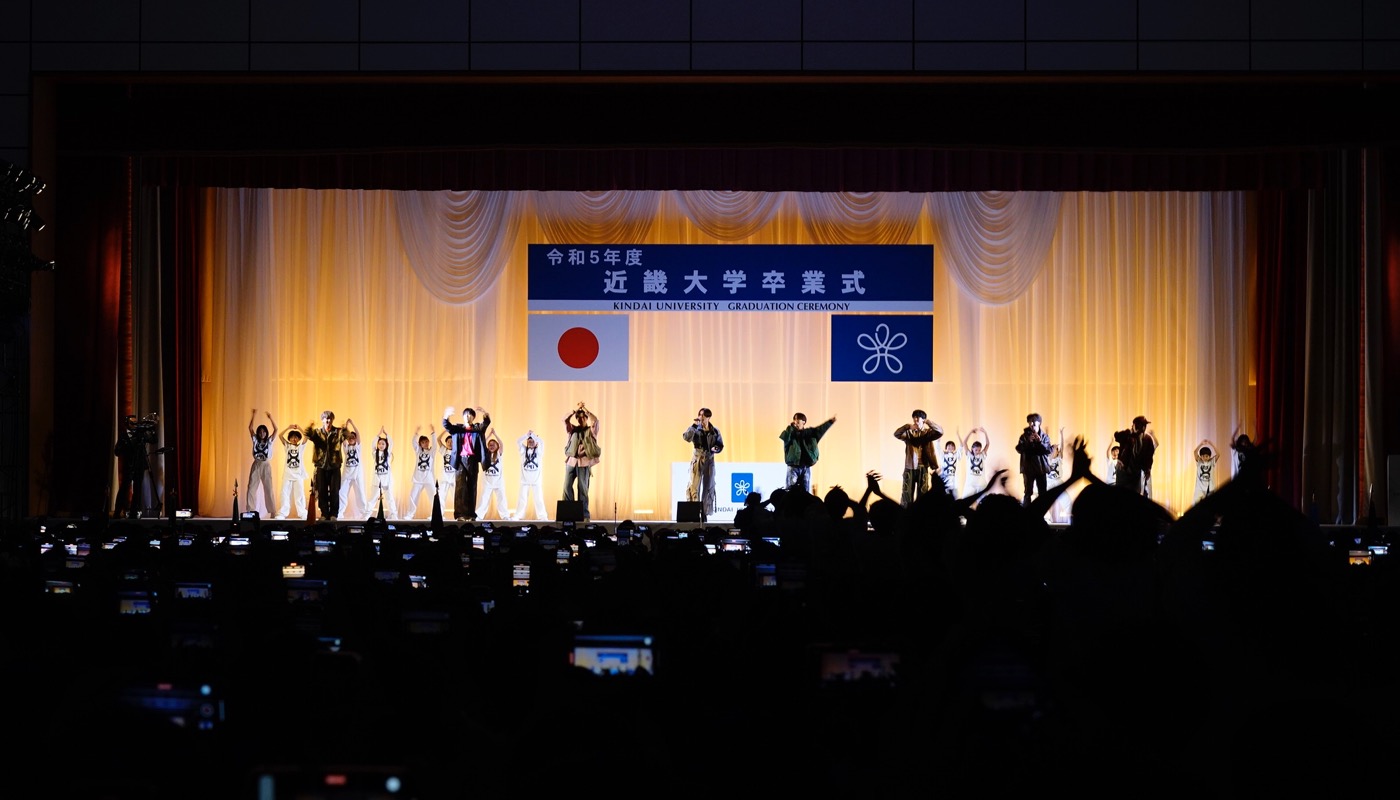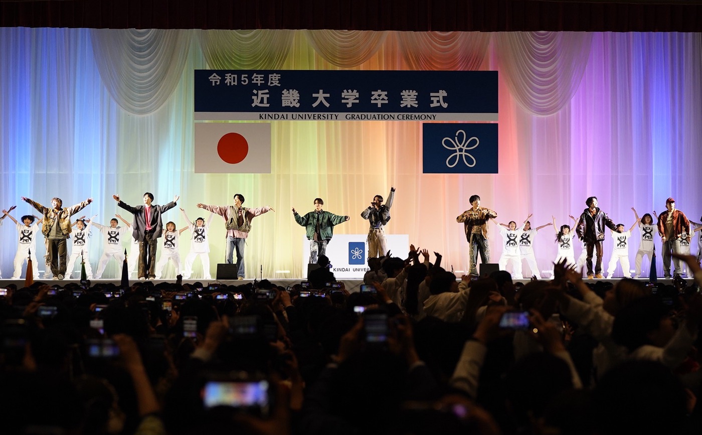3月23日に行われた令和5年度、近畿大学卒業式に、EXILE HIROとFANTASTICSのメンバーが登壇。これから社会へと踏み出す卒業生たちに向けたスピーチとステージパフォーマンスを届け、未来へのエールを送った。