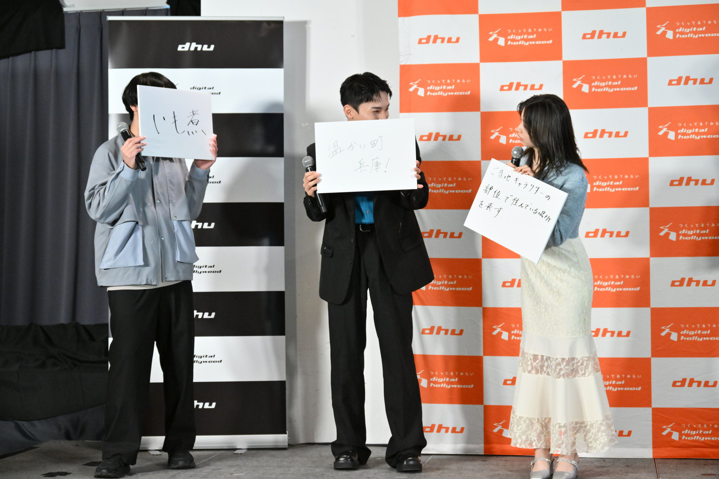 映画『バジーノイズ』の新入生向け特別講義イベントが4月1日、東京・デジタルハリウッド大学で行われ、W主演の川西拓実(JO1)と桜田ひより、そして風間太樹監督が出席した。