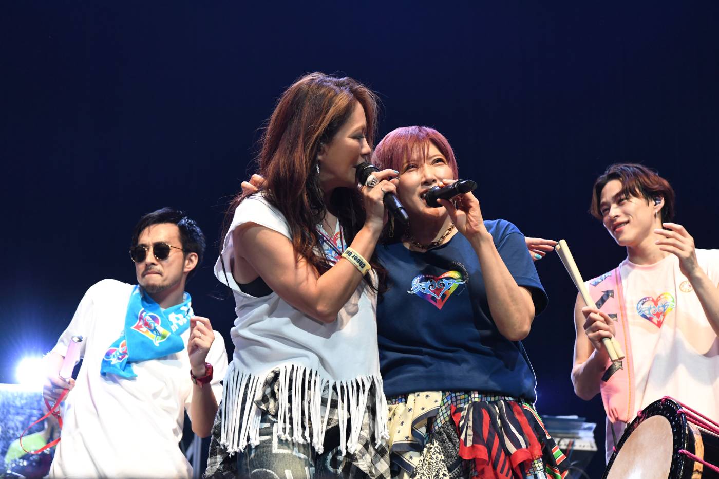 国民的応援歌を客席も大合唱。続けて、坂井泉水と生前一緒に作品を作ってライブをやろう! と約束し、果たせなかった思いを込めて作り、大切な人とつながる楽曲になったという「君に届け」、そして “何とかなるさ” “みんな大丈夫だ”という意味を持つ仮面ライダーオーズの放送テーマソングのHyperロックナンバー「Anything Goes!」で本編を締めくくった。