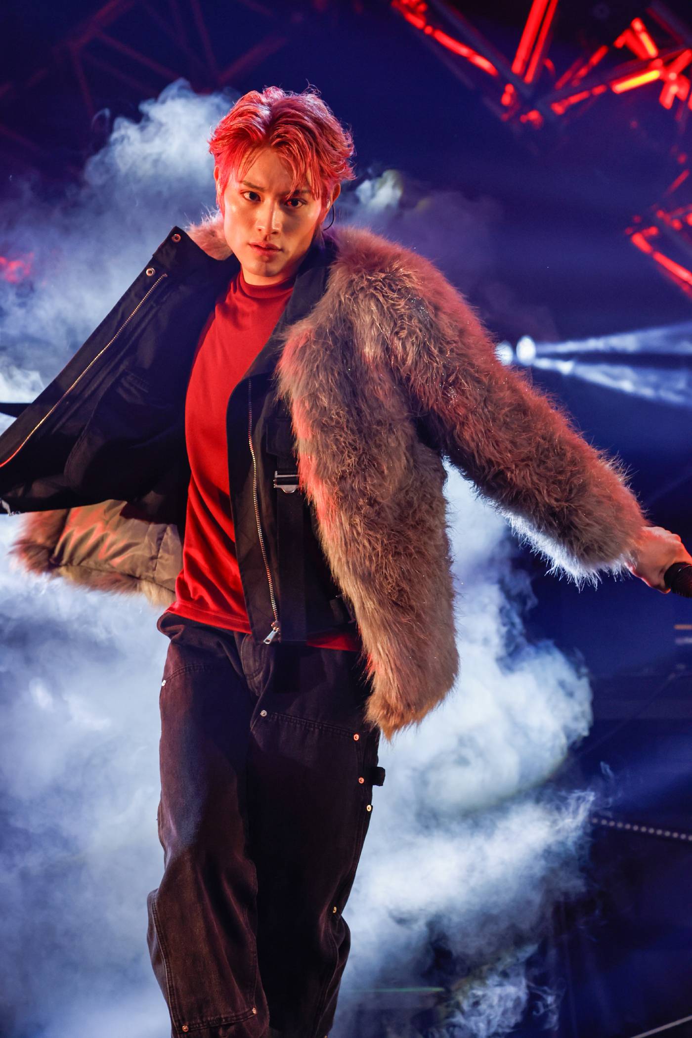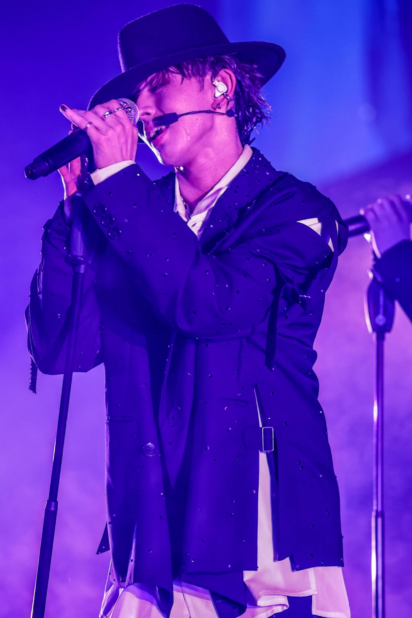 さらにTETTAのハイトーンで間髪いれず始まった「DEJAVU」では、ジャケットを脱ぎシャツのボタンを外し、天井から振り落ちてきた布と絡みながら鍛え上げられた上半身を惜しみなく晒して、カメラに煽情的な表情を向けるのだから場内は阿鼻叫喚。