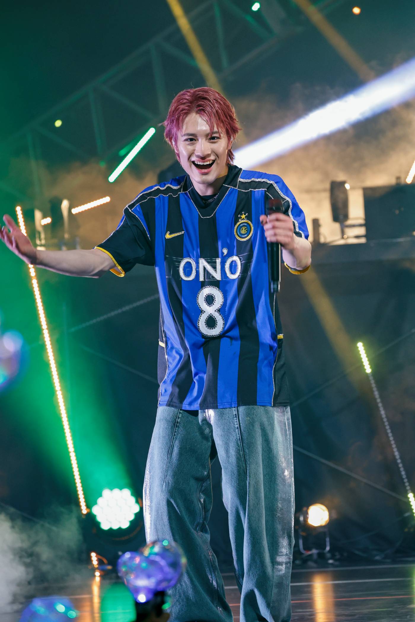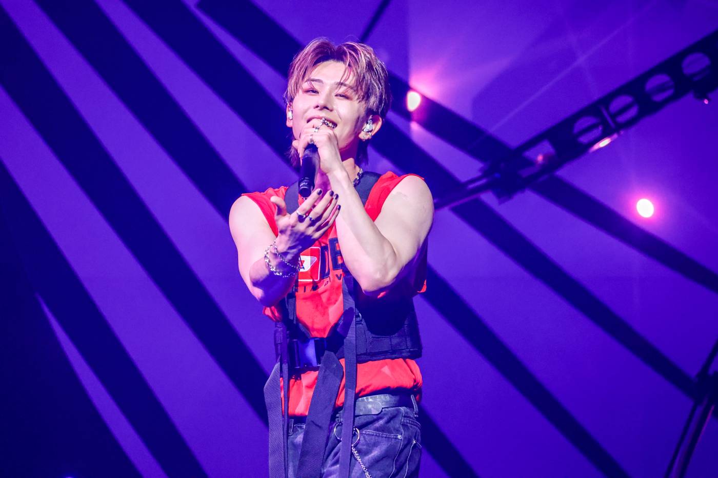 生き物のようにうねるレーザーは客席に光の腕を伸ばし、火薬とファイヤーボールが打ち上がるステージで、どこにもカテゴライズされない先駆者たる己の存在を激しいダンスで誇示しながら、SWAGと一緒に“Lalalala”と大合唱する空間は名実ともに灼熱だ。これぞONE N’ ONLY の真骨頂!と痛感させたところで、しかし、ドロップされたのは「Beautiful」。いきなりの愛らしさの際立つポップチューンで甘い空気を運び、想像を裏切る展開でSWAGに喜びの声をあげさせるのもさすがである。