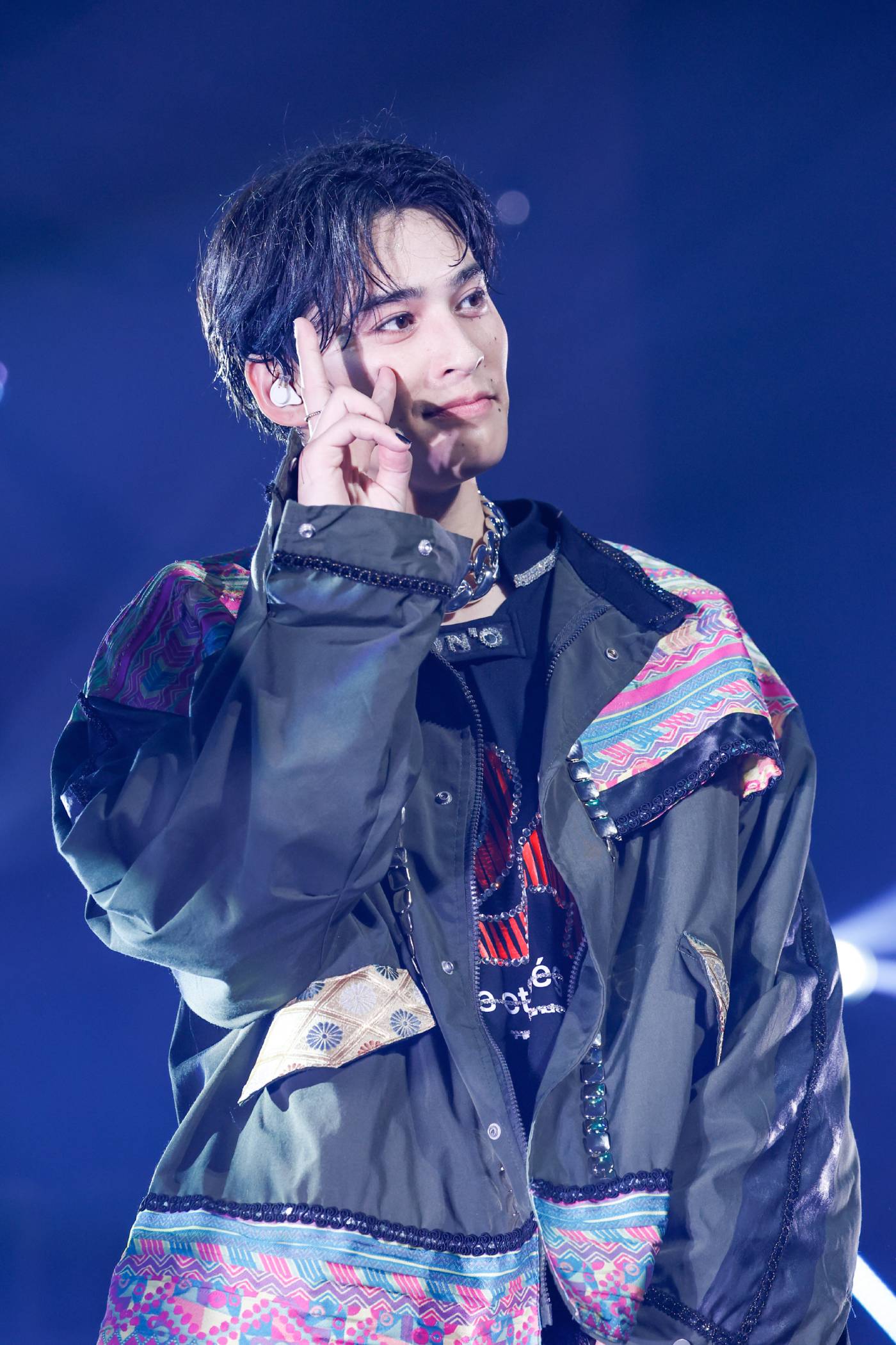 MCに入って一言も話していないと指摘されたEIKUも「楽しい! この景色がすごすぎて感極まってました」と感慨深げ。客席にどの地方から来たのかアンケートを取ると、北海道から沖縄まで手があがり、まさに全国からSWAGが集まったことがわかる。ちなみに衣装プロデュースもメンバーが手掛け、EIKUはセクシーパートのセットアップを、NAOYAは今、着ている衣装を担当したとのこと。NAOYAいわく、和柄と南米要素を取り込んだジャケットの下にはユニフォーム風のシャツを着ており、センターに入っている数字はそれぞれの誕生日だというのもメンバー愛にあふれて熱い。