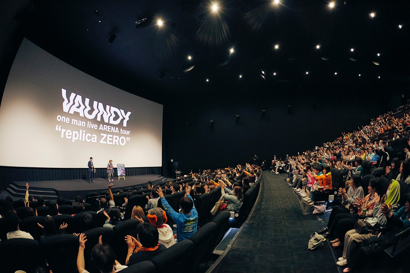2024年1月21日に開催されたアリーナツアーのファイナル公演・代々木第一体育館でのライブを再編集し、ツアーの舞台裏をとらえたドキュメンタリーを加え完成したVaundy初の映画『Vaundy one man live ARENA tour “replica ZERO”』。5月10日の公開に先立ち、前夜には一部劇場で「先行応援上映」が行われた。その劇場のひとつ、東京・TOHOシネマズ新宿では上映後、なんとVaundy本人がサプライズ登場して司会を務めたハリー杉山とともにスペシャルなトークを繰り広げた。