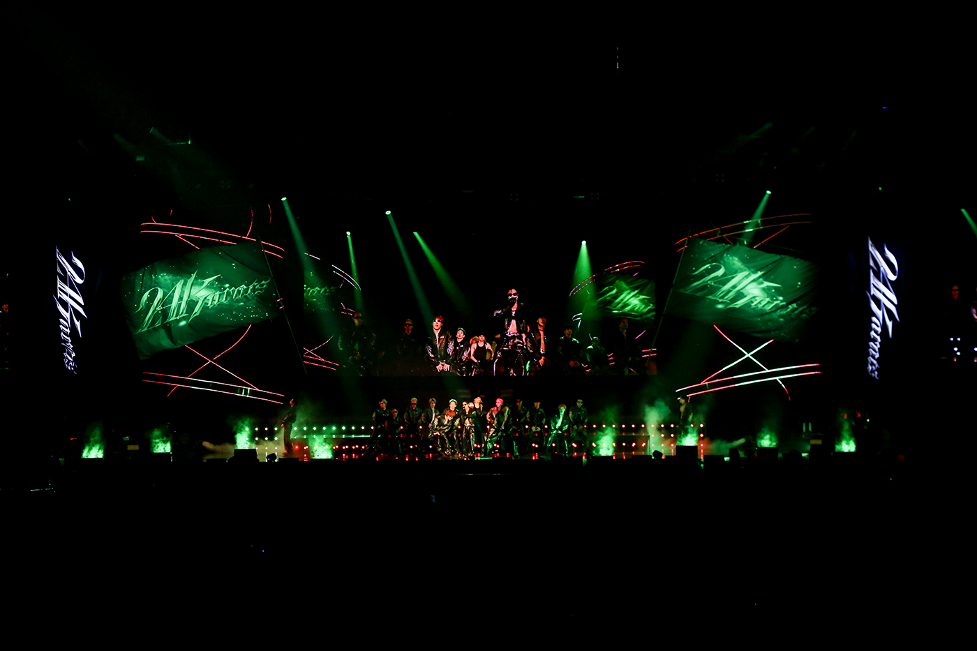 そして、この日の公演の本編、さらにアンコール演出が終わり、「24karats GOLD GENESIS」の幕間映像が会場モニターに流れると会場のテンションも急上昇。歴代の24karatsシリーズのエッセンスを散りばめたダンストラックでパフォーマーがダンスし、“継承”を表現。