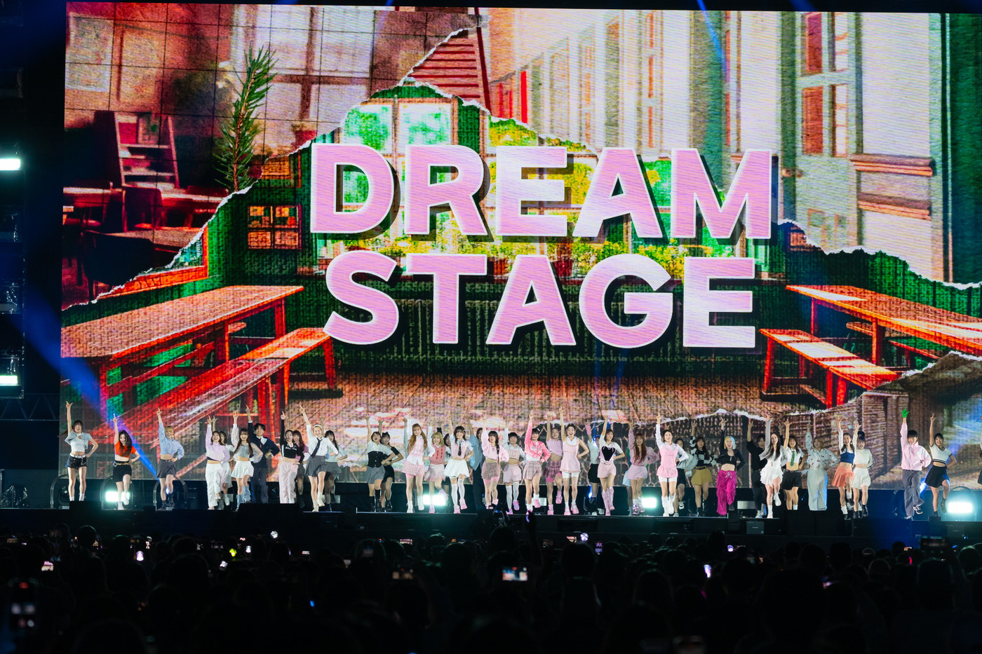 青空に桜が舞う映像を背に、白とピンクを基調としたキュートな衣装でパフォーマンスし、「大きなステージをつくることができて夢のような瞬間でした! 本当にありがとうございました!」とDREAM STAGEを締め括った。