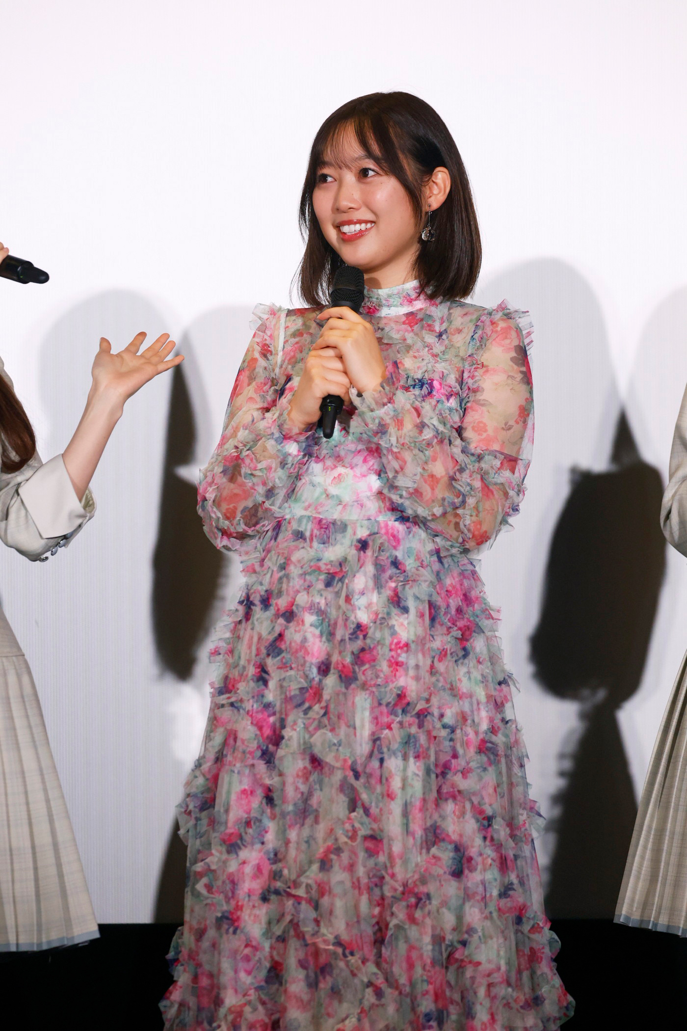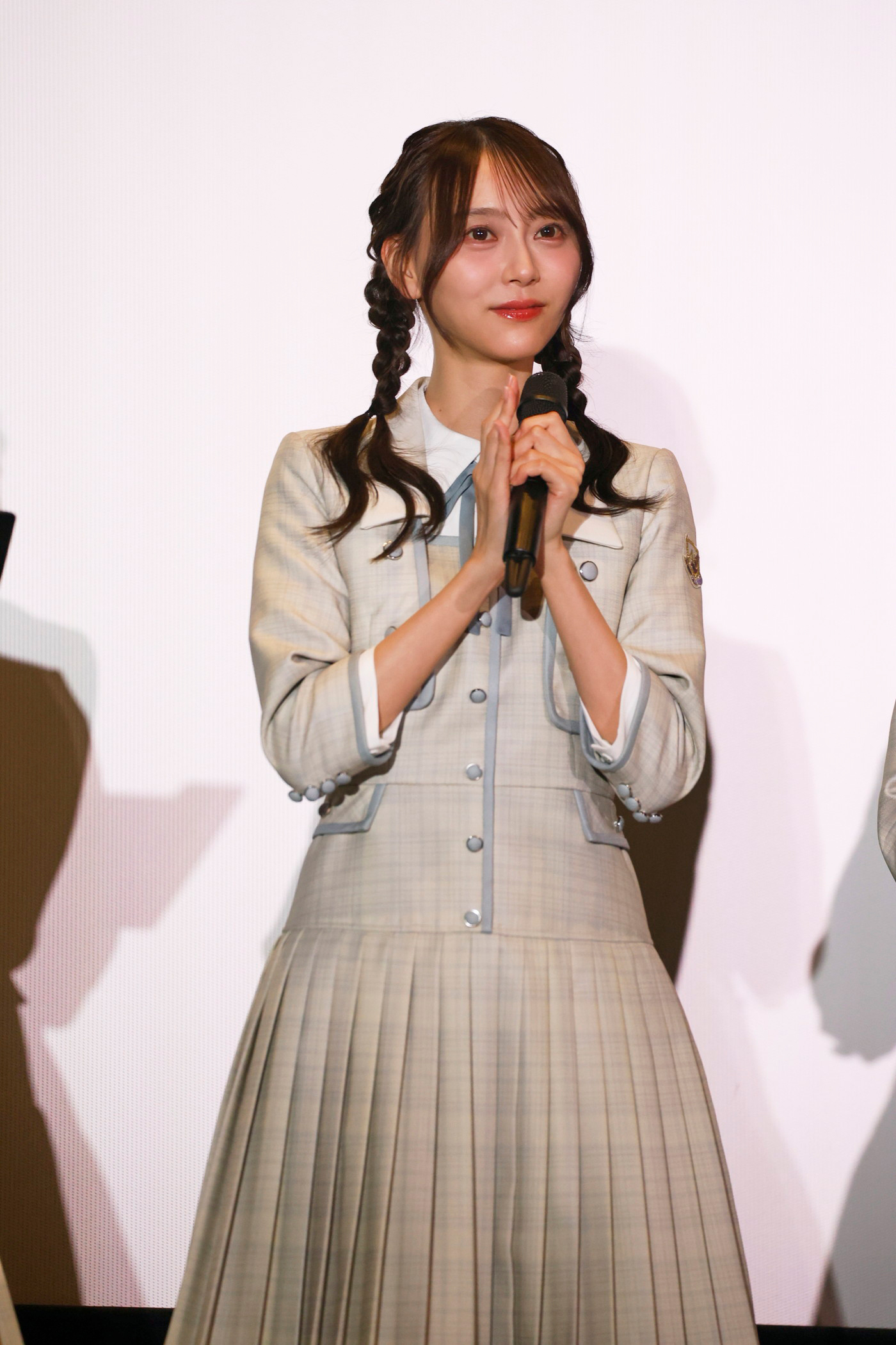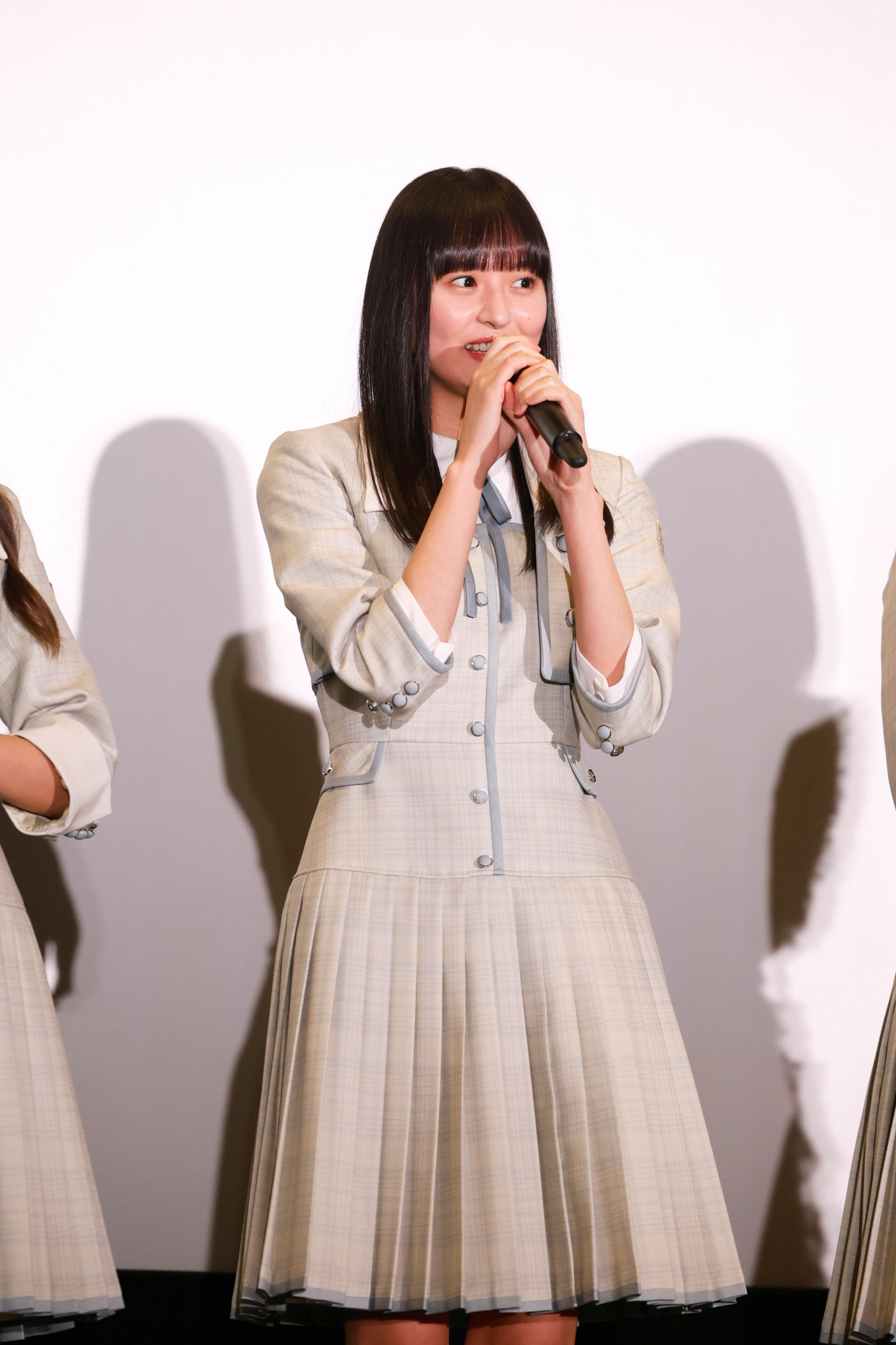 全員からの挨拶が終わり、最初の質問に答える前に、同期との再会と映画が完成したことへの想いが溢れ、思わず涙を流す北川悠理。田村真佑からも久々の再会がうれしいとの言葉があり、会場は温かな空気に包まれた。