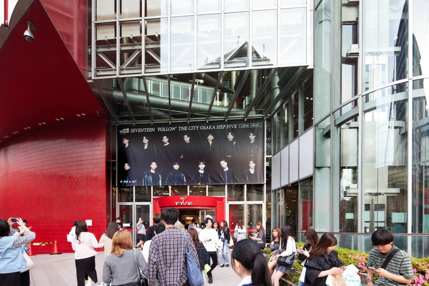 大阪では、ネオンサインで彩られたまちの象徴・道頓堀沿いをSEVENTEEN仕様のアドクルーズが運行し、中座くいだおれビルの「くいだおれ太郎」もSEVENTEENのツアータオルをまとって来訪客を出迎えた。梅田エリアに位置するHEP FIVEともコラボレーションし、ランドマークとなっている「赤い観覧車」の全ゴンドラがSEVENTEENでラッピングされ、多くのファンが連日列をなした。