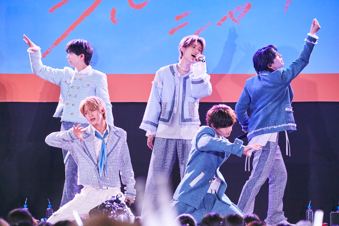 オープニングを飾ったのは、この日、リリースされたばかりの新曲「ブルーシャワー」。全力で生きる“今、この瞬間”の大切さを体現したようなパフォーマンスで観客に爽やかで優しい風を届けると、リーダーの吉田が「1週間前に公開したMVがリリース日の今日、100万回再生を突破しました!」と報告。大きな拍手が沸き起こる中で、「メンバーのアイデアもたくさん取り入れたMVなので、改めて見ていただけたらうれしいです」とアピール。