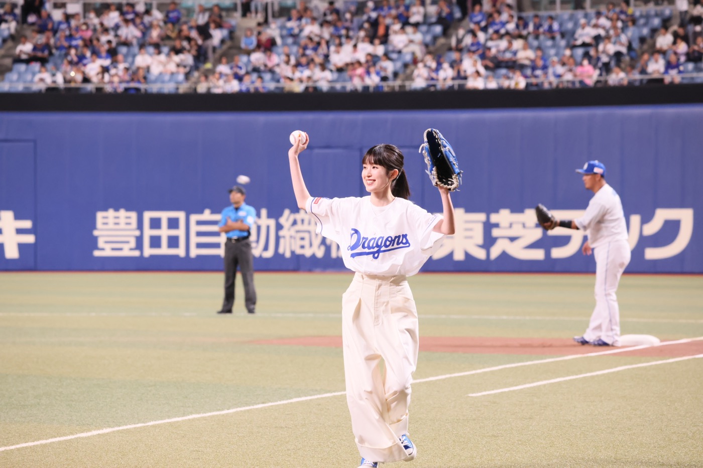 娘・福本莉子はバンテリンドームナゴヤへ移動し、自身初となる始球式に挑戦。緊張しながらもマウンドに上がった福本だが、ノーバウンドでの投球に成功。「緊張したけれど、無事に届いてうれしい! 大泉さんや菅野さんに始球式の難しさを聞いていましたが、無事に成功したよ! と早く伝えたいです!」とコメント。無事に“坪井家家族旅行”の最後の大仕事を笑顔で乗り切った。