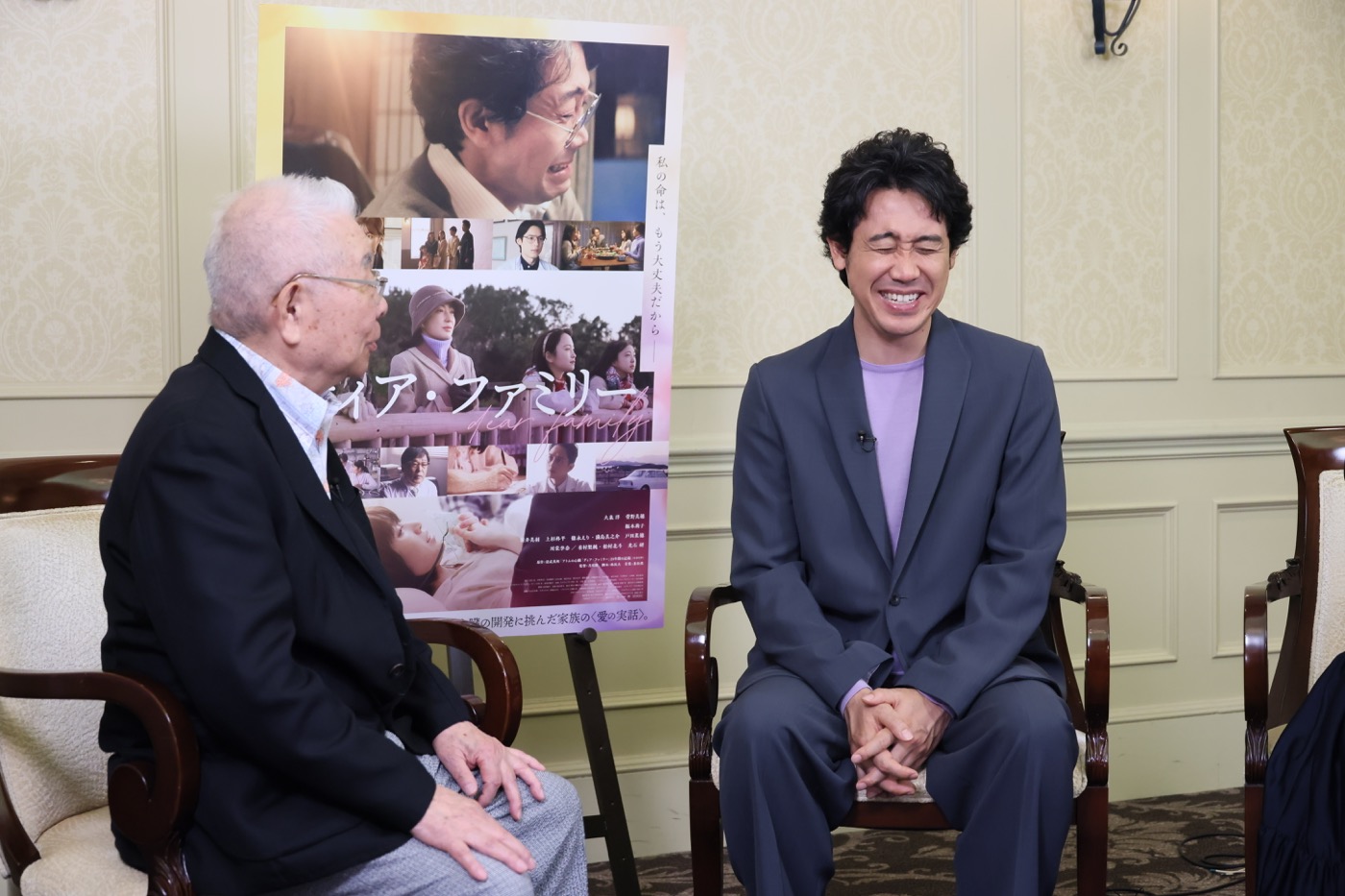 その後、3人は大泉演じる坪井宣政のモデルとなった筒井宣政氏(東海メディカルプロダクツ会長)と対談した。3人そろって筒井氏と語るのはこれが初となっており、握手をしながら久々の再開を喜び合った。