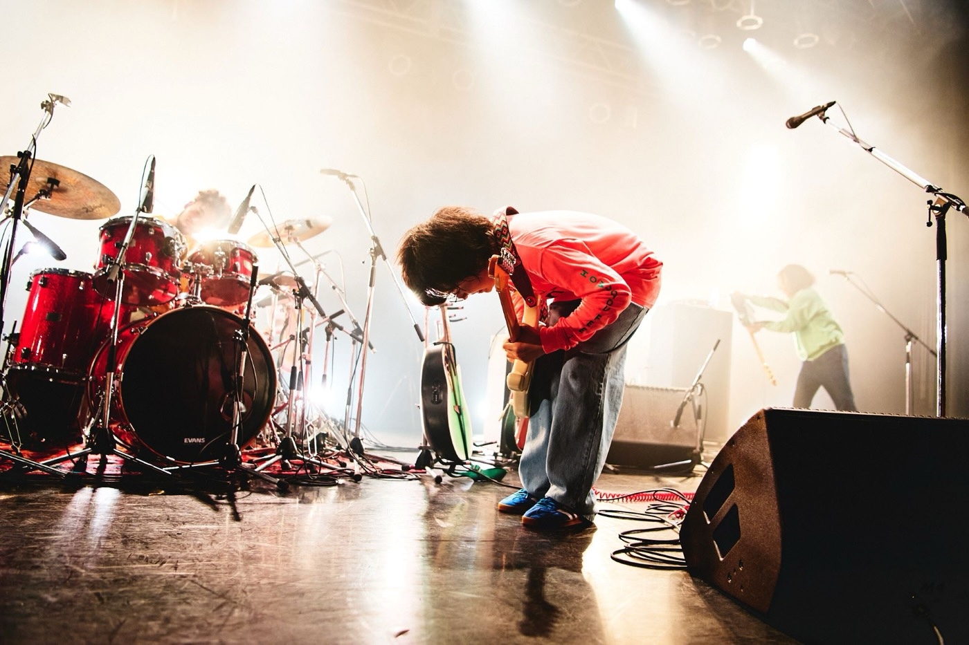 その後バンドメンバーを呼び込み、5月17日にリリースされたばかりの新曲「違和感の向こうで」を瑞々しく演奏すると、会場は晴れやかな空気に包まれる。最後の「水栓」ではギターを置き、ハンドマイクで残りのエネルギーすべてを放出するようにステージを縦横無尽に駆け巡り、最後は観客席に飛び込んだ。