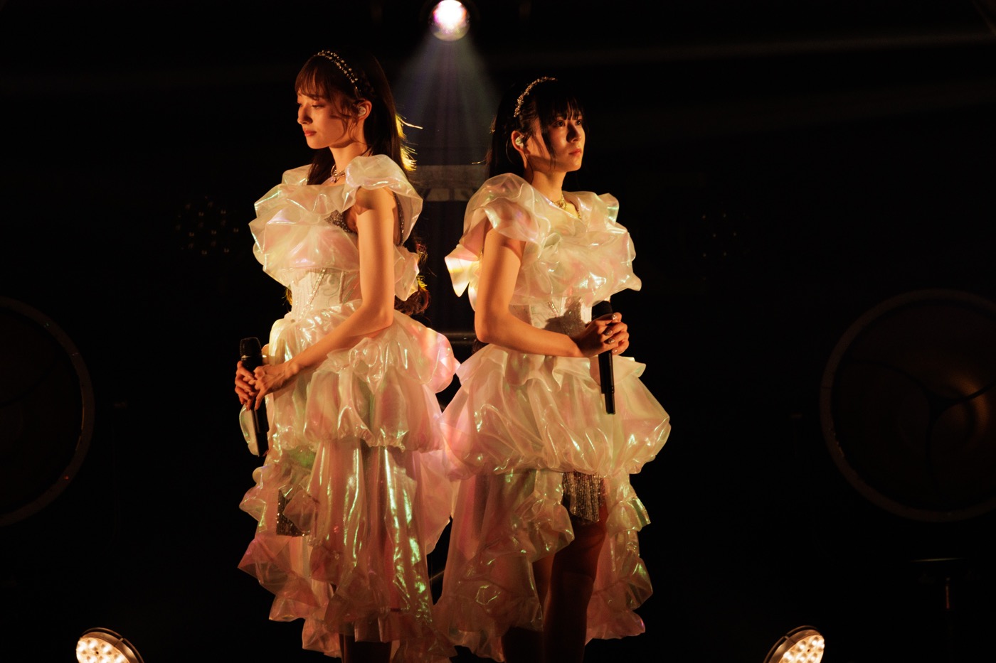 ライブ中盤にはクララが「カラフル」、カレンが「アネモネ」と、それぞれ過去のシングル表題曲をソロで歌うあらたな試みも。最新アルバムの新曲のひとつ「未来航路」では、観客と一緒になって勢いよくタオルを振り回した。その一方で、「アサガオ」「一期一会」といったしっとりとした空気感をまとう新曲も披露され、ふたりのウェットな歌声に会場中が虜に。緩急のあるライブが繰り広げられるなか、代表曲「コネクト」ではきらびやかな銀テープがフロアに向けて放たれた。