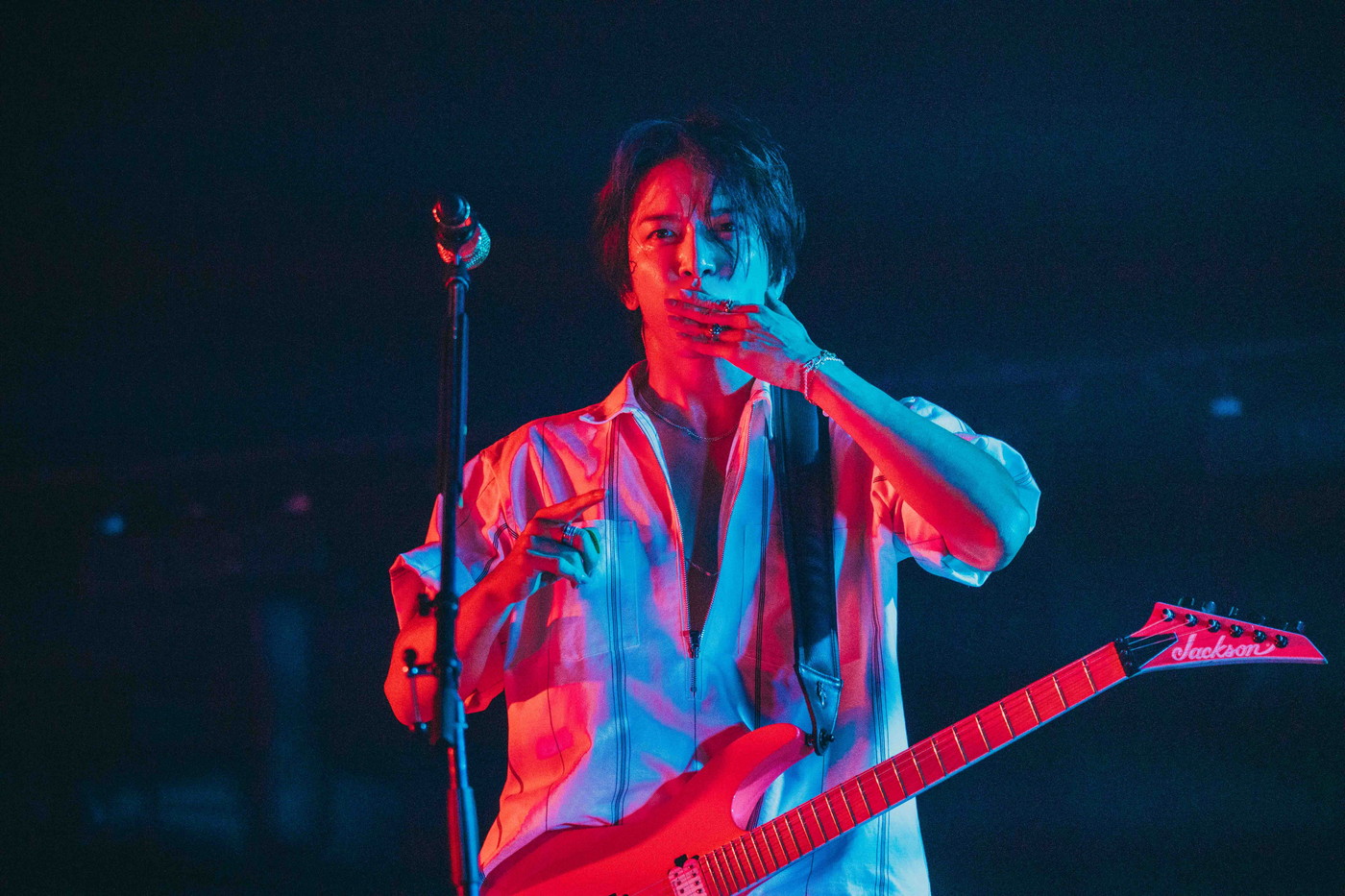 MCでは、「僕たちが対バンをするのは、初めて。『サマソニ』や『ROCK IN JAPAN』などフェスや事務所のファミリーコンサートでほかのアーティストのライブを観る機会はありましたが、初の対バンは準備からドキドキしていました。次は夏フェスで一緒に出たい」というベースのジョンシン。