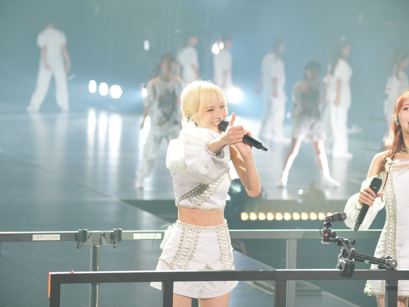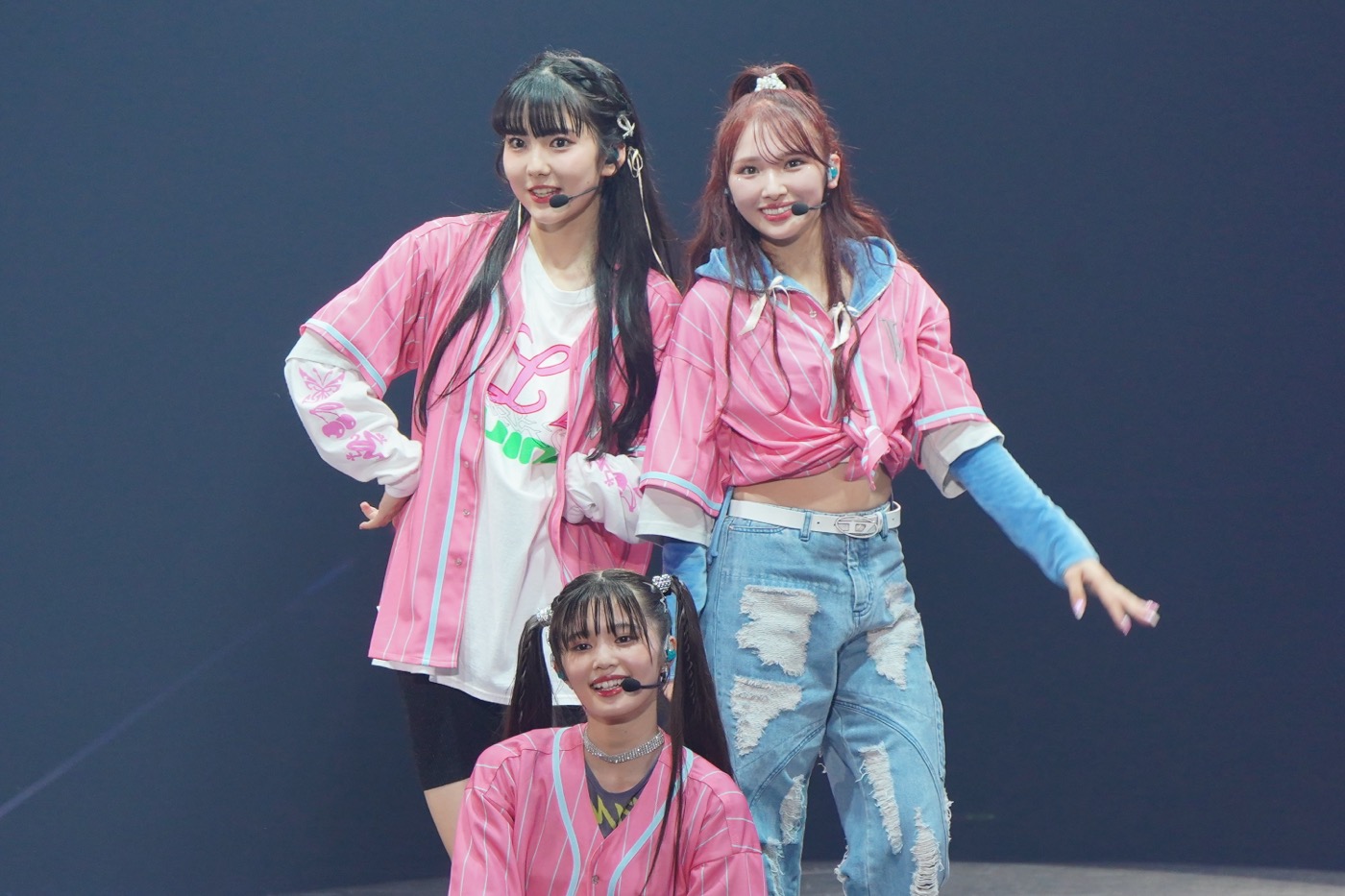ここで、小川の「私たちにも皆さんにも寄り添ってくれる曲です」という前振りから、10月リリース予定の新曲「寄り道 -take it easy, baby-」をライブで初披露。チルな雰囲気のトラックに、オーディエンスの背中をそっと押すような優しい言葉を乗せて歌う。グループリーダーの鶴屋は太陽のような笑顔を、増田來亜は繊細な歌声を、隅谷百花は伸びやかで美しい歌声を届け、会場いっぱいに温かい思いを届けた。