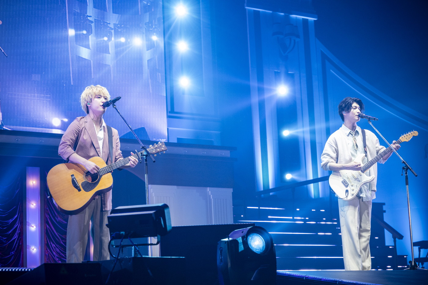 愛に溺れるバラード「Lack」でドラマティックに舞ったのは、BUDDiiS。ささやくような歌声に、まるで心の叫びのようなボーカルを放つMORRIEは、実弟のSHOOTを後ろから抱き寄せ、兄弟で心の通い合ったハーモニーを会場中に届けていった。原因は自分にある。も、長野凌大出演ドラマ『シークレット同盟』の主題歌だった「Mania」でオーディエンスを挑発。メンバー同士で濃厚に絡み、小指を噛んで妖艶なムードを漂わせながら、メンバーの低音ボイスやウィスパーに翻弄される長野を主人公に、逃れられない物語を描いていく。