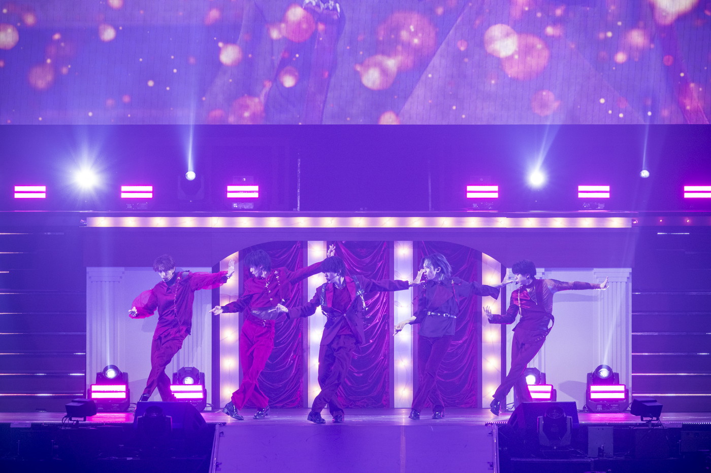 続くM!LKも、「Kiss Plan」で王子様なパブリックイメージを一掃。どうしようもなく惹かれてしまう想いをセクシーな声音と仕草で表現し、艶っぽい表情でこれまでの彼らになかった“クール”を提示していく。曲中で打ち上がるファイヤーボールも燃え立つ心を表して、ウィスパー気味のボーカルから滲む熱情は緋色の衣装と妖しい微笑により、さらに狂おしいものに。あらたなM!LKワールドをEBiDANファンに知らしめていった。