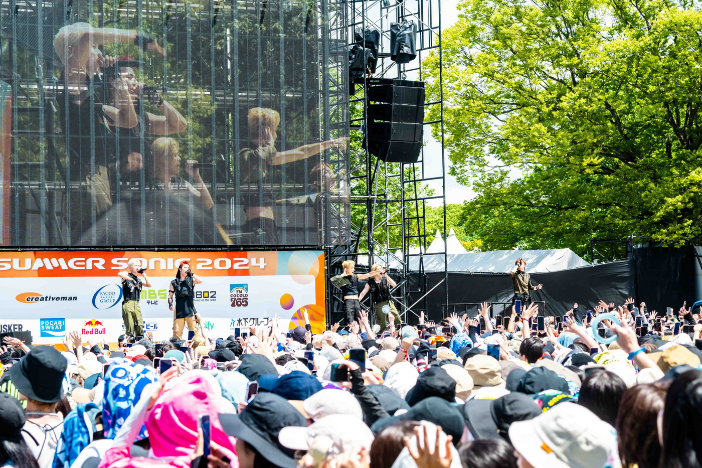 今年は『ROCK IN JAPAN FESTIVAL 2024』『JAPAN JAM 2024』など、多数の大型音楽フェスに出演してきたINI。『SUMMER SONIC 2024』の舞台ではその経験値を最大限に発揮するように、INI初となる生バンドを引き連れたステージで魅了した。