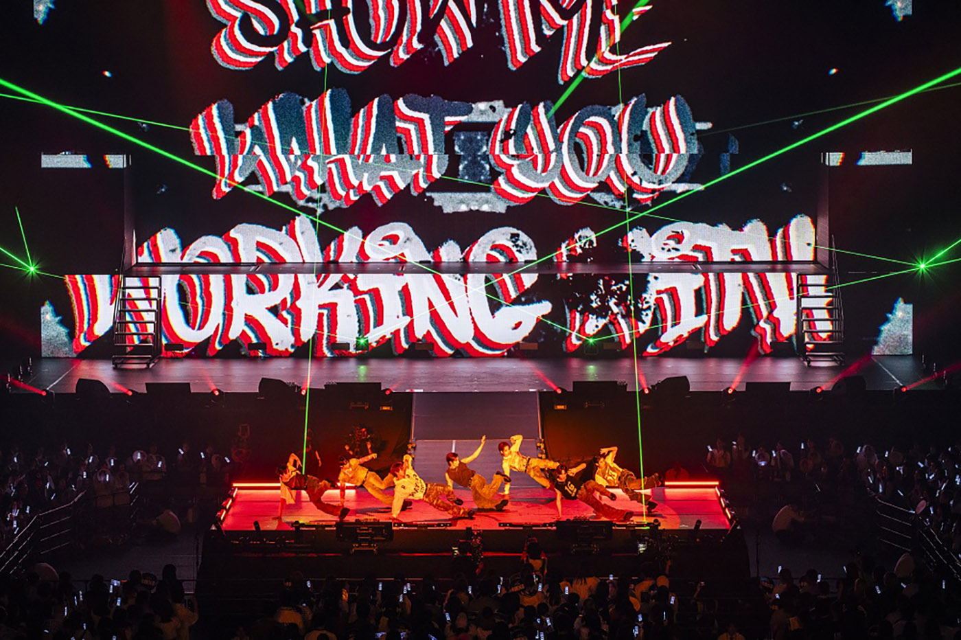ショーケースのためだけに特別に用意されたダンスパフォーマンスで幕を開け、1曲目は彼らにとって名刺代わりの「Ride the Vibe (Japanese Ver.)」からスタート。韓国活動や日本におけるプロモーションで徹底的に育て上げられた本楽曲は、パフォーマンスもすっかり板に付き、世界観と相まって彼ら特有の “自由” なバイブスで一気に会場を包み込む。