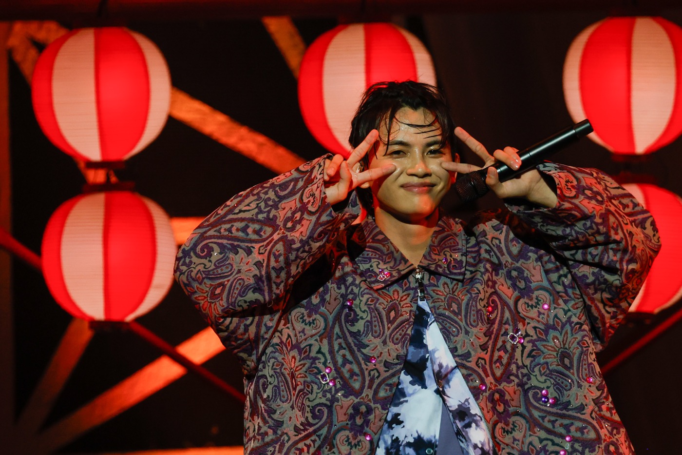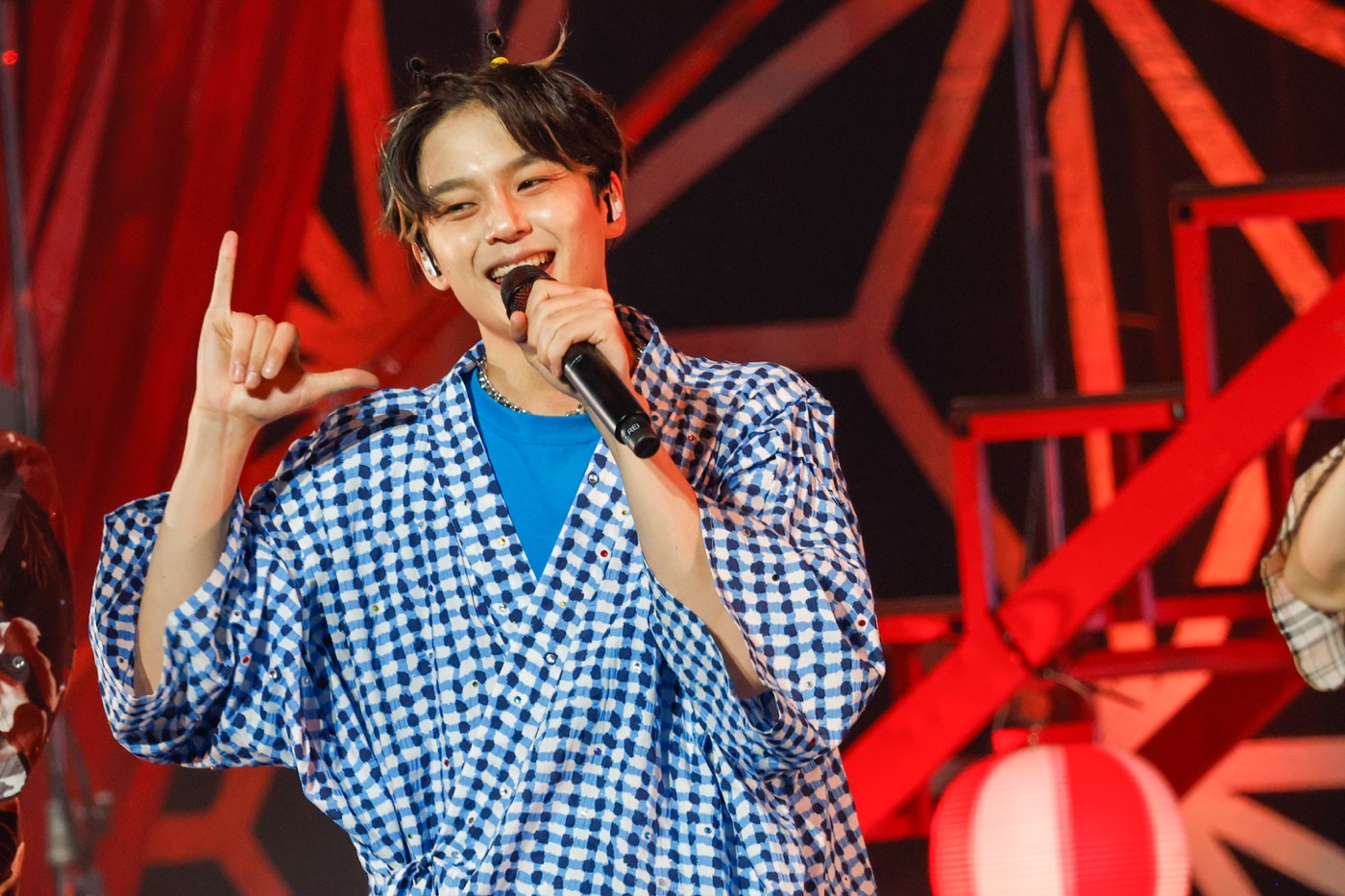 そのまま2階席を回ってステージへと降り、夏色をした「TALKIN‘」のサウンドと櫓に乗って大きく団扇を振る。その気取りのない自然体な空気感は、「気の置けない関係性で観も心も解き放とう」と歌う楽曲のメッセージともピッタリだ。続いて、陽の光を感じさせる「LUCKY」でも団扇を持ったまま軽やかに躍って、文字どおりの“ラッキー”を振りまいていく。