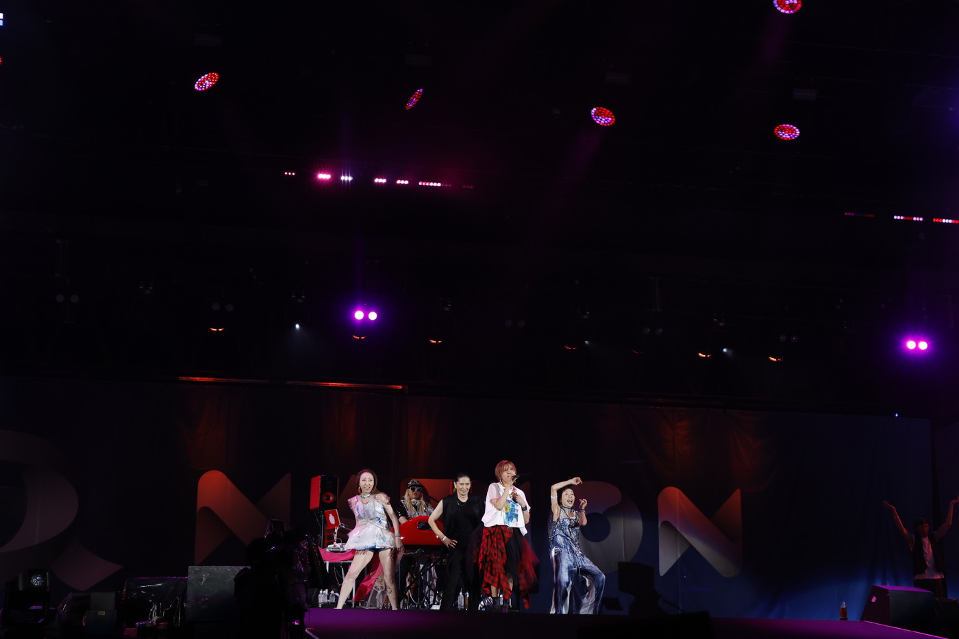 「survival dAnce~no no cry more~」になるとYU-KIもダンサーたちも笑顔で手を振りながら花道へ進み、「TRFはみんなのおかげで30周年を迎えました! まだまだ突っ走っていくぞ!」(DJ KOO)と、自身のデビュー30周年を『a-nation』の観客たちとともに祝った。