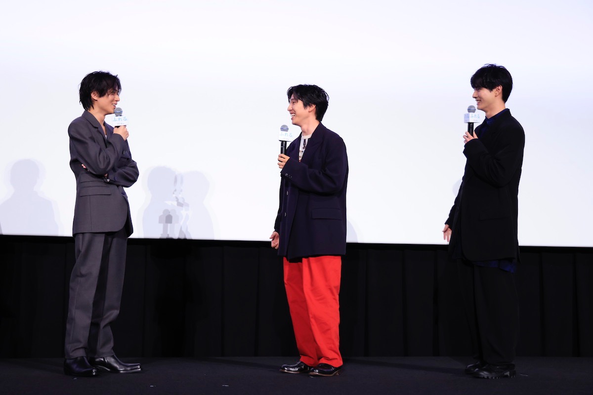また、坂東は「こんな大きい劇場で舞台挨拶をしたのは僕初めてなので、すごい圧巻です」と緊張感を滲ませながら話し、前田は「今日もう緊張でドキドキしながら入ってきたんですけど、みなさんのお顔を見たら、すごく楽しんでいただけたのかなと思って安心しました」とほっとした笑みで挨拶した。