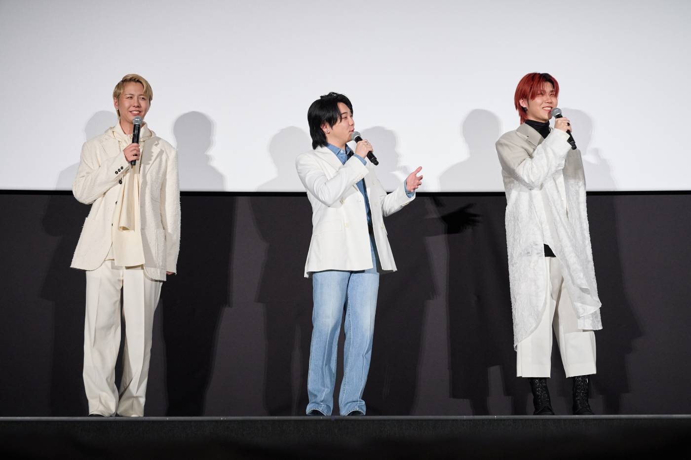 イベントの模様は北海道から沖縄まで、全国劇場でライブビューイングの生配信をされており、満員の観客の方々、全国の劇場の皆さんに向けて、3人が本作の舞台裏や現在の想いをたっぷり語った。
