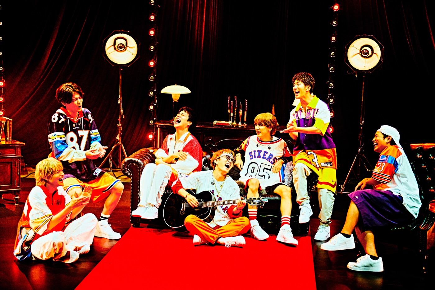 撮影はどんどんと佳境に入っていく。カラフルでスポーティな衣装に身を包み、LEDスクリーンに映し出される鮮やかな光の映像をバックに歌う「コンビニいくけどなんかいる?」は、10年経っても未だに少年の心を失わない、WEST.らしさ満点の前向きなポップチューン。今回が初めてのライブパフォーマンスであったが、何年も歌っているかのように息の合った振り付けと、アドリブを交えたわちゃわちゃ感が最高に楽しい。早口言葉のような歌詞を、明るく激しいビートに乗って踊りながら歌いこなす。まさにWEST.の、底知れぬエネルギーに溢れる姿をたっぷりと楽しめる曲だ。
