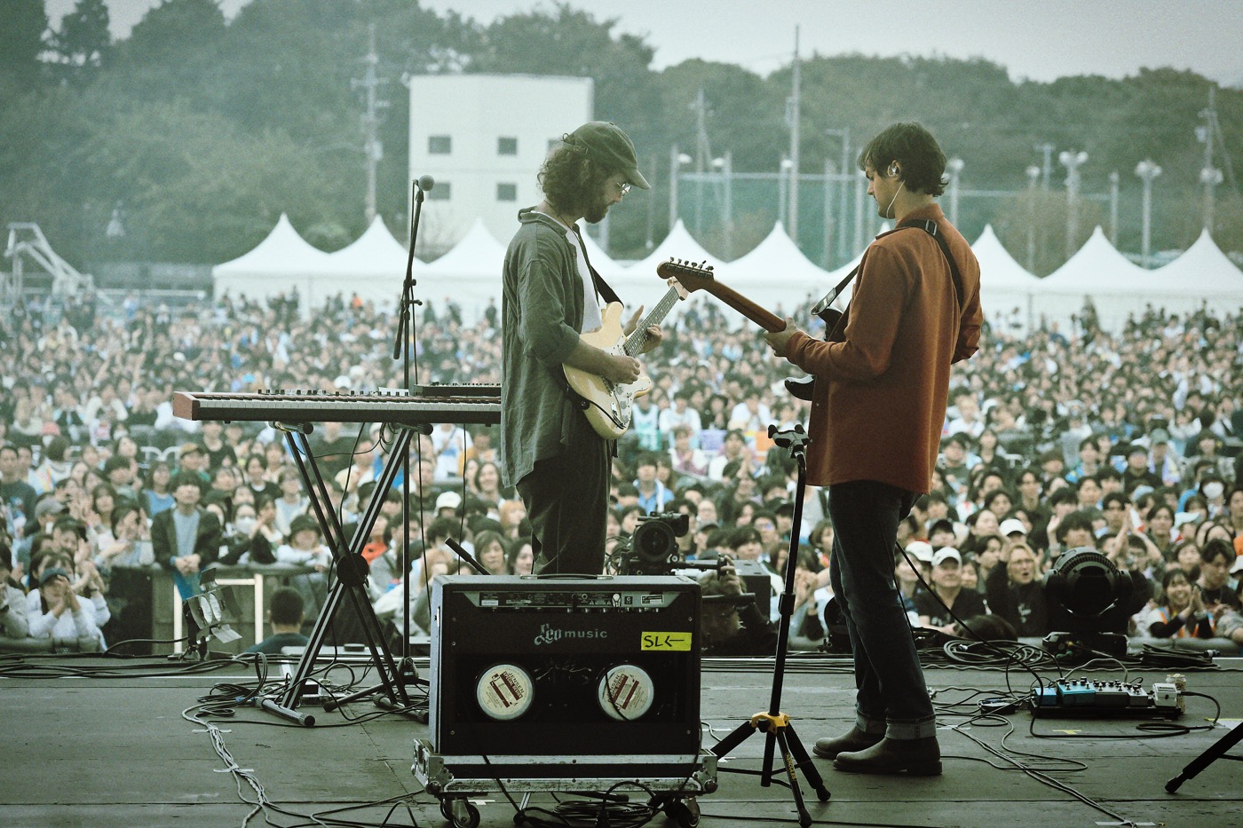 スペシャルゲストとして呼び込んだのは川上洋平。川上がうれしそうに「何年か前、NYでラジオで曲がかかってたのを聴いてめっちゃいいなと思って僕のラジオでかけたらなぜかDMがきて、そこからめっちゃ仲良いです。フジロックよりサマソニより先に呼びました!」と誇らしげに叫ぶと拍手が巻き起こった。ジョッシュとハグして一緒にステージの端から端まで移動。ジョッシュは「ありがとう! 洋平さん!」と感謝を伝え、川上が去ったあと、笑いながら「Fun」と口にする。「Metamodernity」の多幸感溢れるサウンドで締め括った。